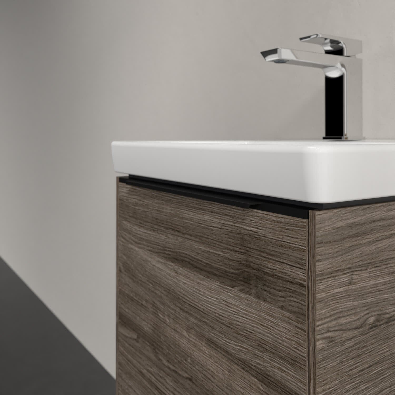 Der Waschtischunterschrank der Kollektion Subway 3.0 von Villeroy & Boch besticht durch gradliniges, zeitloses Design und ausreichend Stauraum. Front und Korpus sind mit einer hochwertigen Direktbeschichtung oder Lackierung, deren Anti-Fingerprint-Oberfläche unschönen Fingerabdrücken vorbeugt, versehen. Hinter der Tür findet sich großzügiger Stauraum für Pflege- und Hygieneartikel. Die dezente Griffleiste sorgt für einfache Handhabung und bildet einen besonderen Design-Akzent.