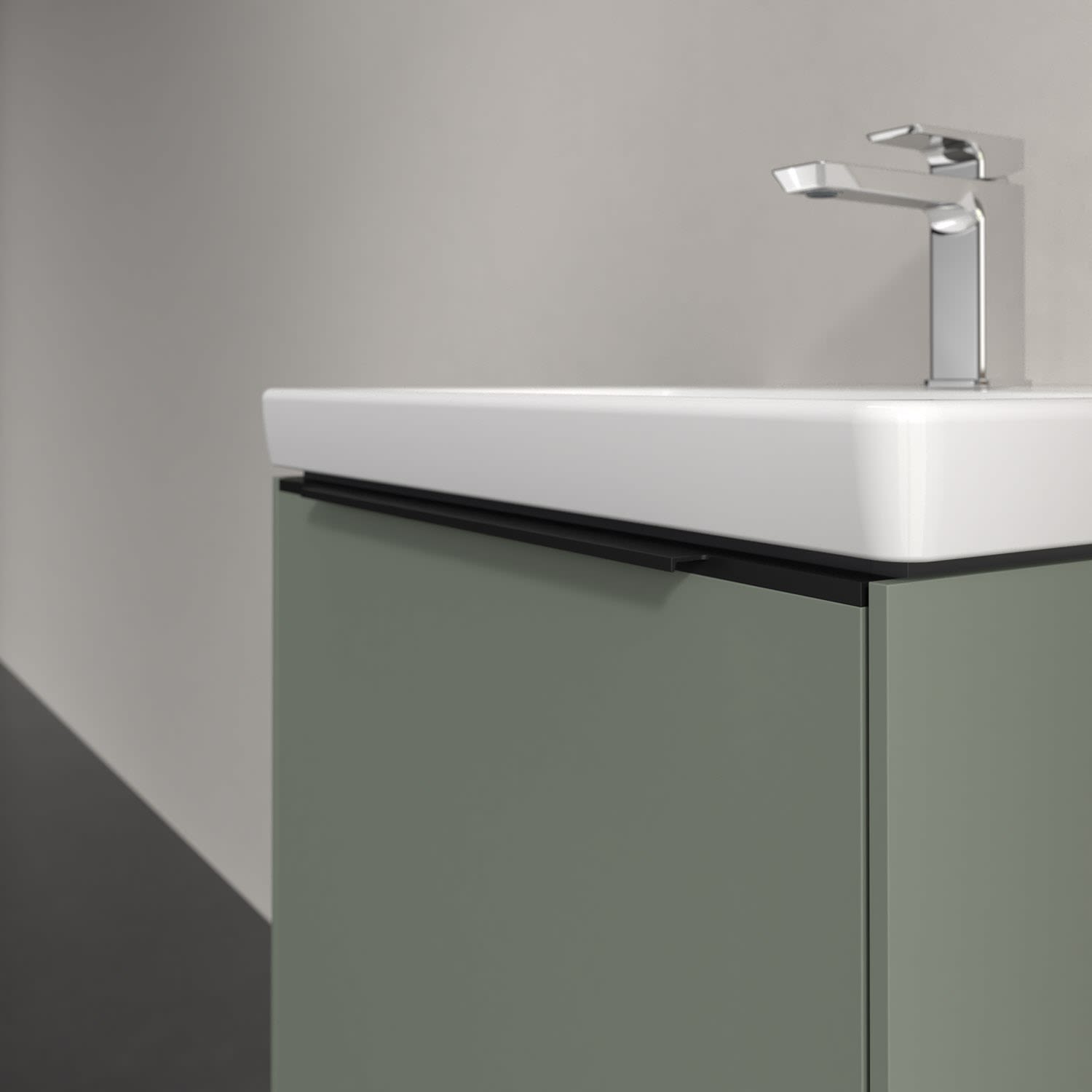 Der Waschbeckenunterschrank der Kollektion Subway 3.0 von Villeroy & Boch besticht durch gradliniges, zeitloses Design und großzügigen Stauraum. Front und Korpus sind mit einer hochwertigen Direktbeschichtung oder Lackierung, deren Anti-Fingerprint-Oberfläche unschönen Fingerabdrücken vorbeugt, versehen. Eine voll ausziehbare Schublade mit rutschhemmendem Boden, Selbsteinzug-Funktion sowie einer integrierten kleinen Accessory-Box bietet Platz für Pflege- und Hygieneartikel. Die dezente Griffleiste sorgt für einfache Handhabung und bildet einen besonderen Design-Akzent.