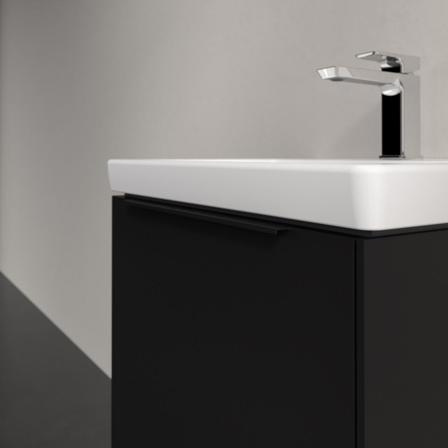 Der Waschbeckenunterschrank der Kollektion Subway 3.0 von Villeroy & Boch besticht durch gradliniges, zeitloses Design und großzügigen Stauraum. Front und Korpus sind mit einer hochwertigen Direktbeschichtung oder Lackierung, deren Anti-Fingerprint-Oberfläche unschönen Fingerabdrücken vorbeugt, versehen. Eine voll ausziehbare Schublade mit rutschhemmendem Boden, Selbsteinzug-Funktion sowie einer integrierten kleinen Accessory-Box bietet Platz für Pflege- und Hygieneartikel. Die dezente Griffleiste sorgt für einfache Handhabung und bildet einen besonderen Design-Akzent.
