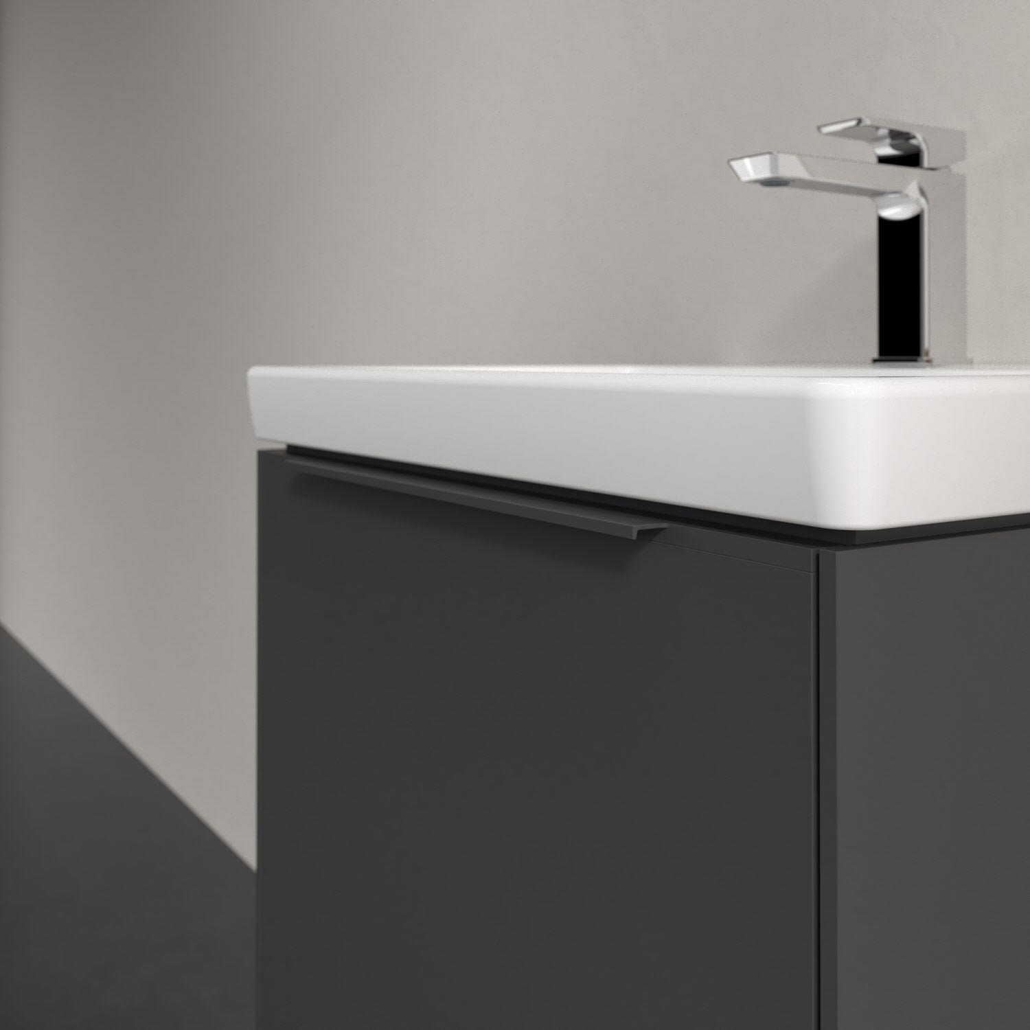 Der Waschbeckenunterschrank der Kollektion Subway 3.0 von Villeroy & Boch besticht durch gradliniges, zeitloses Design und großzügigen Stauraum. Front und Korpus sind mit einer hochwertigen Direktbeschichtung oder Lackierung, deren Anti-Fingerprint-Oberfläche unschönen Fingerabdrücken vorbeugt, versehen. Eine voll ausziehbare Schublade mit rutschhemmendem Boden, Selbsteinzug-Funktion sowie einer integrierten kleinen Accessory-Box bietet Platz für Pflege- und Hygieneartikel. Die dezente Griffleiste sorgt für einfache Handhabung und bildet einen besonderen Design-Akzent.
