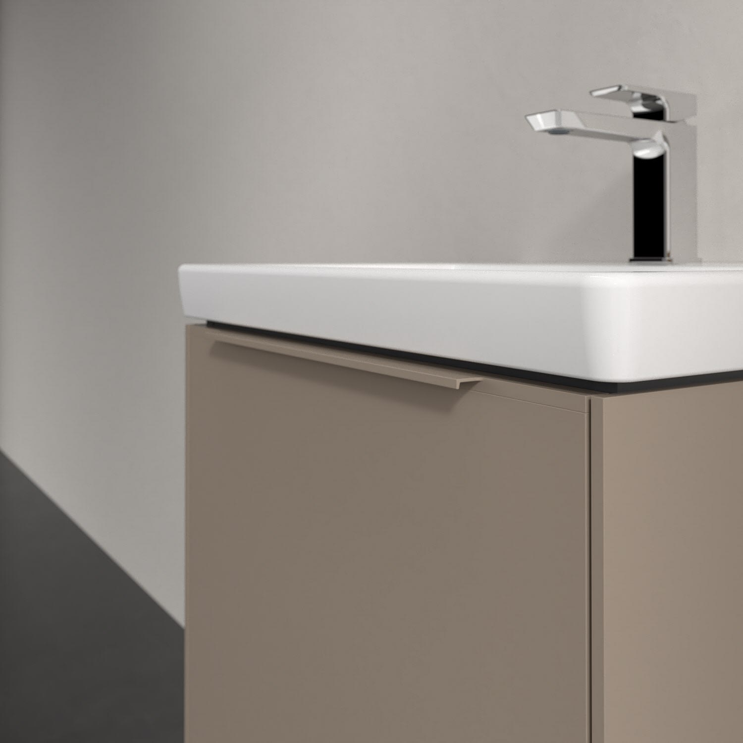 Der Waschbeckenunterschrank der Kollektion Subway 3.0 von Villeroy & Boch besticht durch gradliniges, zeitloses Design und großzügigen Stauraum. Front und Korpus sind mit einer hochwertigen Direktbeschichtung oder Lackierung, deren Anti-Fingerprint-Oberfläche unschönen Fingerabdrücken vorbeugt, versehen. Eine voll ausziehbare Schublade mit rutschhemmendem Boden, Selbsteinzug-Funktion sowie einer integrierten kleinen Accessory-Box bietet Platz für Pflege- und Hygieneartikel. Die dezente Griffleiste sorgt für einfache Handhabung und bildet einen besonderen Design-Akzent.