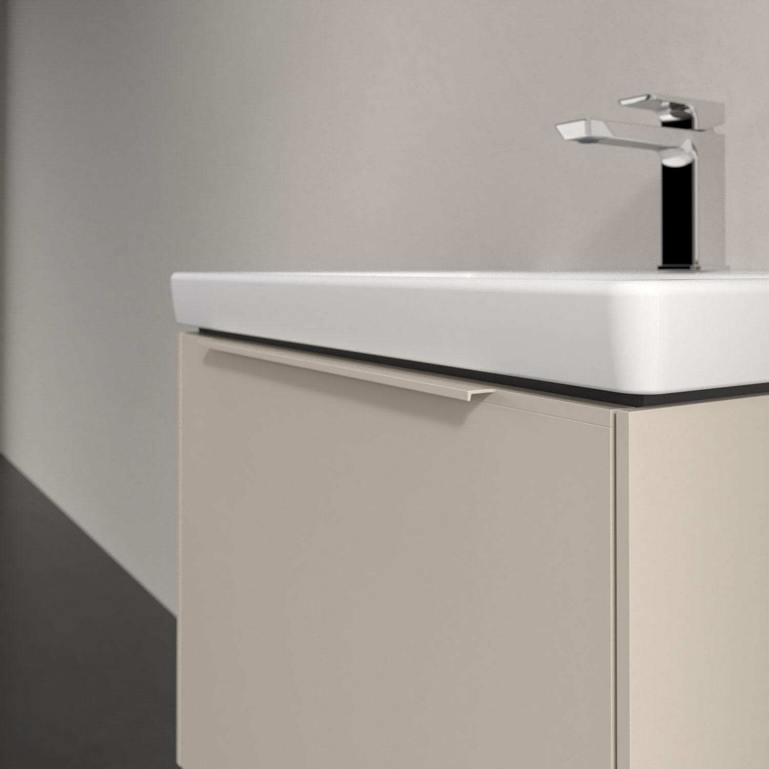 Der Waschbeckenunterschrank der Kollektion Subway 3.0 von Villeroy & Boch besticht durch gradliniges, zeitloses Design und großzügigen Stauraum. Front und Korpus sind mit einer hochwertigen Direktbeschichtung oder Lackierung, deren Anti-Fingerprint-Oberfläche unschönen Fingerabdrücken vorbeugt, versehen. Eine voll ausziehbare Schublade mit rutschhemmendem Boden, Selbsteinzug-Funktion sowie einer integrierten kleinen Accessory-Box bietet Platz für Pflege- und Hygieneartikel. Die dezente Griffleiste sorgt für einfache Handhabung und bildet einen besonderen Design-Akzent.