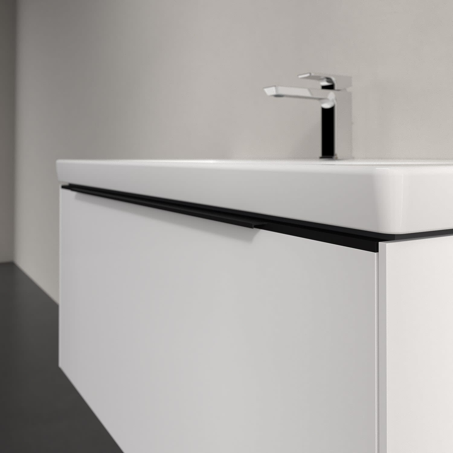 Der Waschbeckenunterschrank der Kollektion Subway 3.0 von Villeroy & Boch besticht durch gradliniges, zeitloses Design und großzügigen Stauraum. Front und Korpus sind mit einer hochwertigen Direktbeschichtung oder Lackierung, deren Anti-Fingerprint-Oberfläche unschönen Fingerabdrücken vorbeugt, versehen. Eine voll ausziehbare Schublade mit rutschhemmendem Boden, Selbsteinzug-Funktion sowie zwei integrierten kleinen Accessory-Boxen bietet Platz für Pflege- und Hygieneartikel. Die dezente Griffleiste sorgt für einfache Handhabung und bildet einen besonderen Design-Akzent.