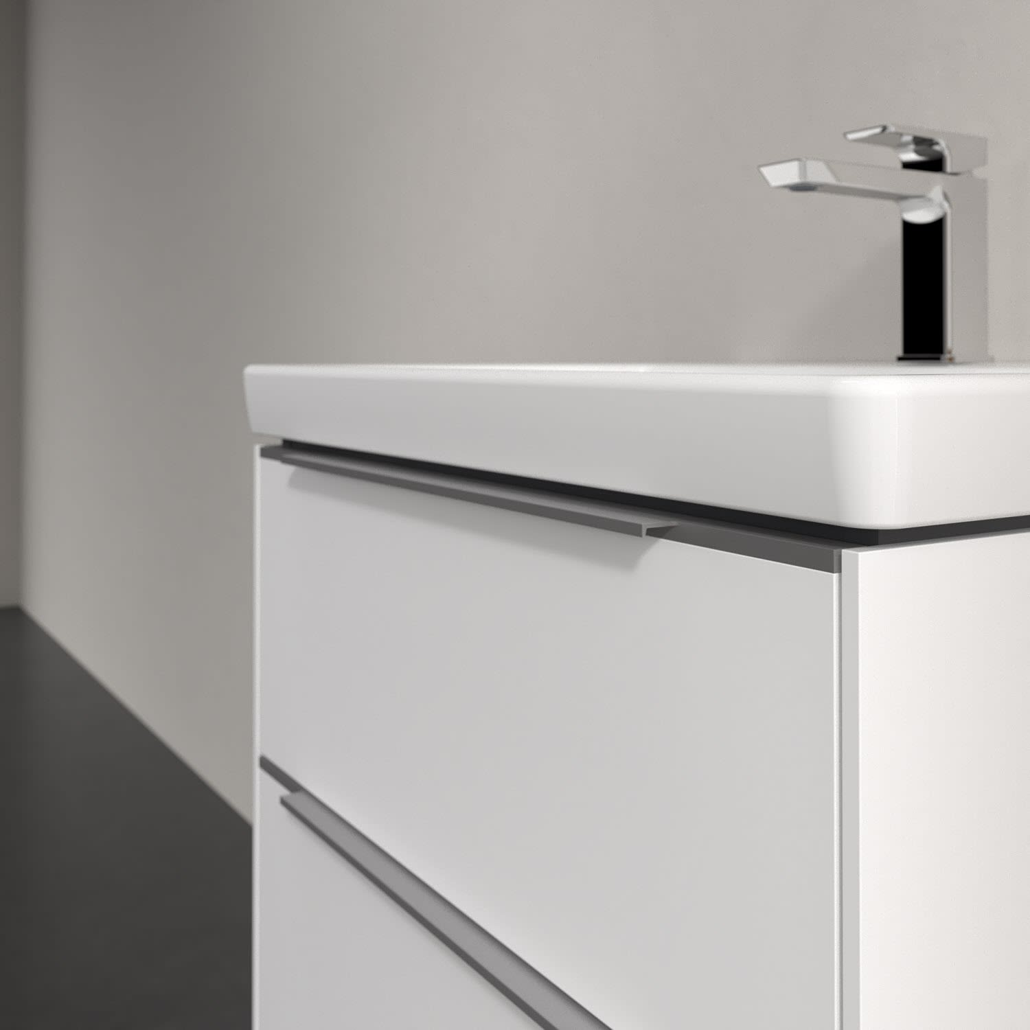 Der Waschtischunterschrank der Kollektion Subway 3.0 von Villeroy & Boch besticht durch gradliniges, zeitloses Design und großzügigen Stauraum. Front und Korpus sind mit einer hochwertigen Direktbeschichtung oder Lackierung, deren Anti-Fingerprint-Oberfläche unschönen Fingerabdrücken vorbeugt, versehen. Zwei voll ausziehbare Schubladen mit rutschhemmenden Böden, Selbsteinzug-Funktion sowie einer integrierten kleinen Accessory-Box bieten extra viel Platz für Pflege- und Hygieneartikel. Die dezente Griffleiste sorgt für einfache Handhabung und bildet einen besonderen Design-Akzent.