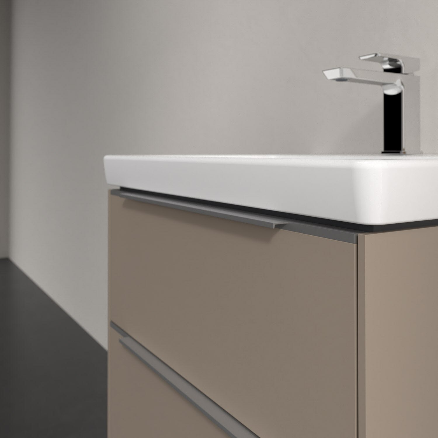 Der Waschtischunterschrank der Kollektion Subway 3.0 von Villeroy & Boch besticht durch gradliniges, zeitloses Design und großzügigen Stauraum. Front und Korpus sind mit einer hochwertigen Direktbeschichtung oder Lackierung, deren Anti-Fingerprint-Oberfläche unschönen Fingerabdrücken vorbeugt, versehen. Zwei voll ausziehbare Schubladen mit rutschhemmenden Böden, Selbsteinzug-Funktion sowie einer integrierten kleinen Accessory-Box bieten extra viel Platz für Pflege- und Hygieneartikel. Die dezente Griffleiste sorgt für einfache Handhabung und bildet einen besonderen Design-Akzent.