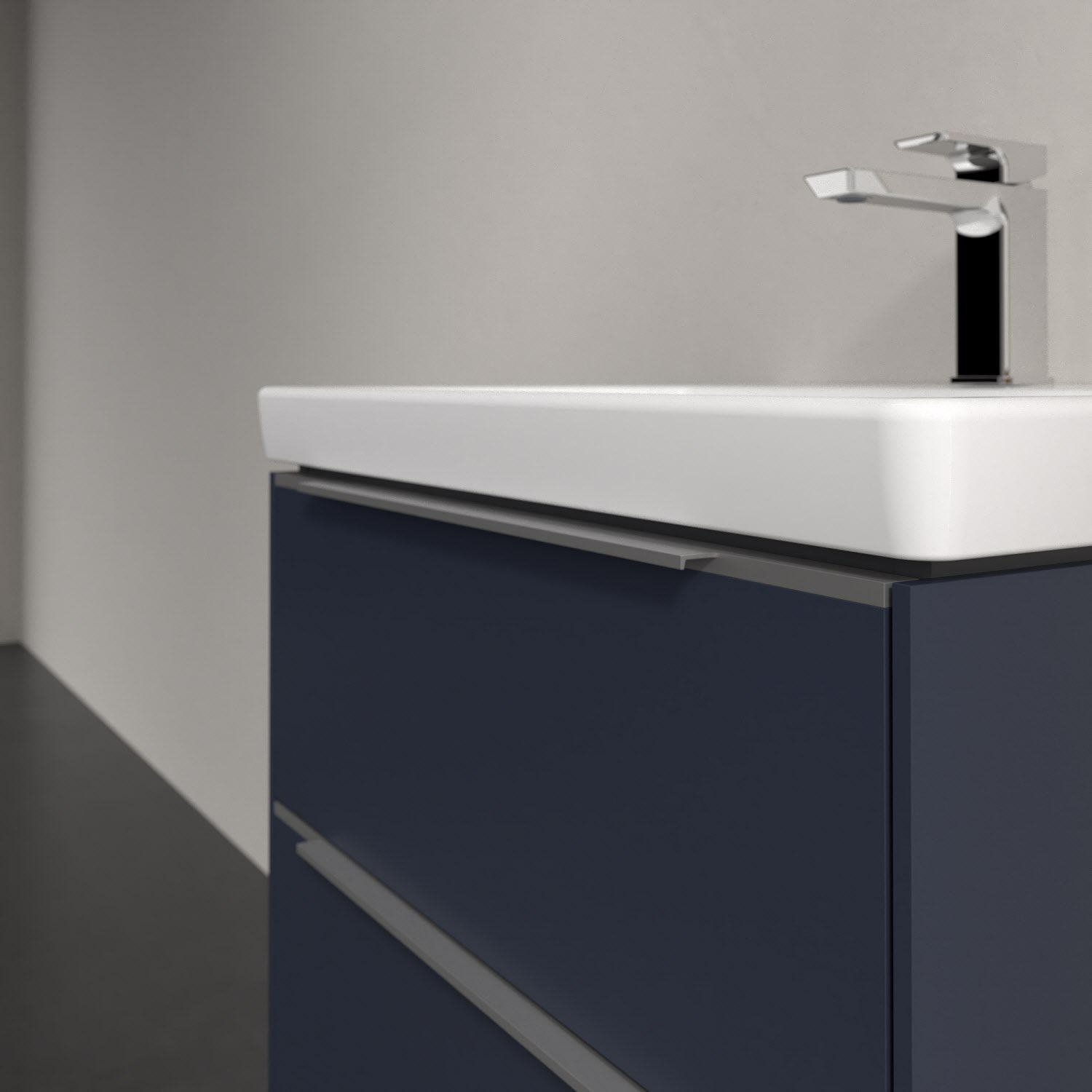 Der Waschtischunterschrank der Kollektion Subway 3.0 von Villeroy & Boch besticht durch gradliniges, zeitloses Design und großzügigen Stauraum. Front und Korpus sind mit einer hochwertigen Direktbeschichtung oder Lackierung, deren Anti-Fingerprint-Oberfläche unschönen Fingerabdrücken vorbeugt, versehen. Zwei voll ausziehbare Schubladen mit rutschhemmenden Böden, Selbsteinzug-Funktion sowie einer integrierten kleinen Accessory-Box bieten extra viel Platz für Pflege- und Hygieneartikel. Die dezente Griffleiste sorgt für einfache Handhabung und bildet einen besonderen Design-Akzent.