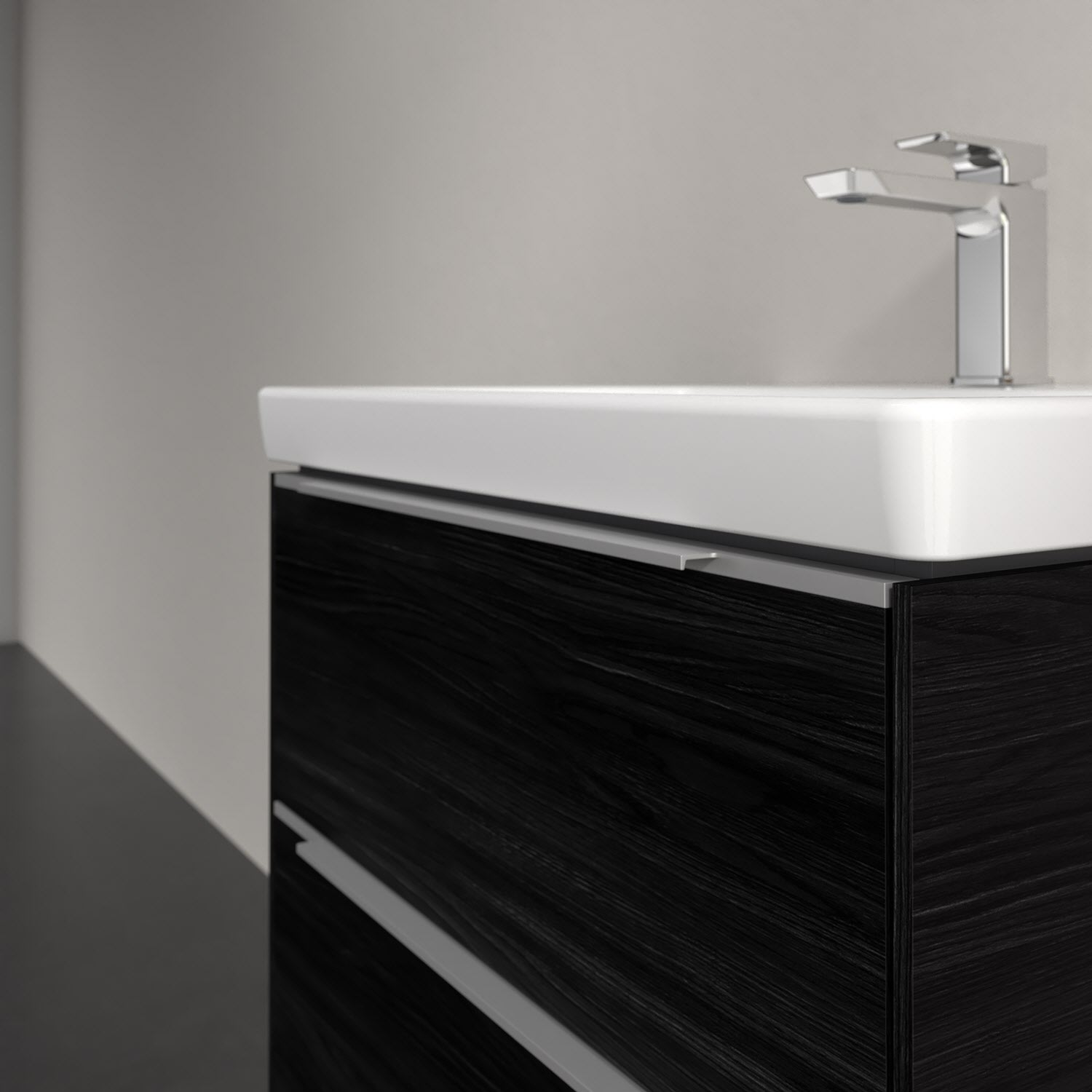 Der Waschtischunterschrank der Kollektion Subway 3.0 von Villeroy & Boch besticht durch gradliniges, zeitloses Design und großzügigen Stauraum. Front und Korpus sind mit einer hochwertigen Direktbeschichtung oder Lackierung, deren Anti-Fingerprint-Oberfläche unschönen Fingerabdrücken vorbeugt, versehen. Zwei voll ausziehbare Schubladen mit rutschhemmenden Böden, Selbsteinzug-Funktion sowie einer integrierten kleinen Accessory-Box bieten extra viel Platz für Pflege- und Hygieneartikel. Die dezente Griffleiste sorgt für einfache Handhabung und bildet einen besonderen Design-Akzent.
