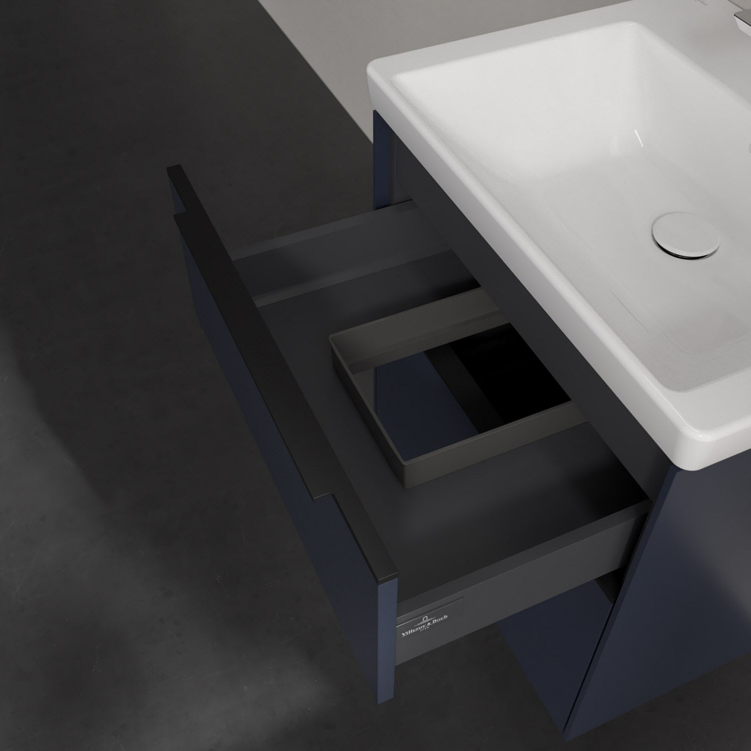 Der Waschtischunterschrank der Kollektion Subway 3.0 von Villeroy & Boch besticht durch gradliniges, zeitloses Design und großzügigen Stauraum. Front und Korpus sind mit einer hochwertigen Direktbeschichtung oder Lackierung, deren Anti-Fingerprint-Oberfläche unschönen Fingerabdrücken vorbeugt, versehen. Zwei voll ausziehbare Schubladen mit rutschhemmenden Böden, Selbsteinzug-Funktion sowie einer integrierten kleinen Accessory-Box bieten extra viel Platz für Pflege- und Hygieneartikel. Die dezente Griffleiste sorgt für einfache Handhabung und bildet einen besonderen Design-Akzent.