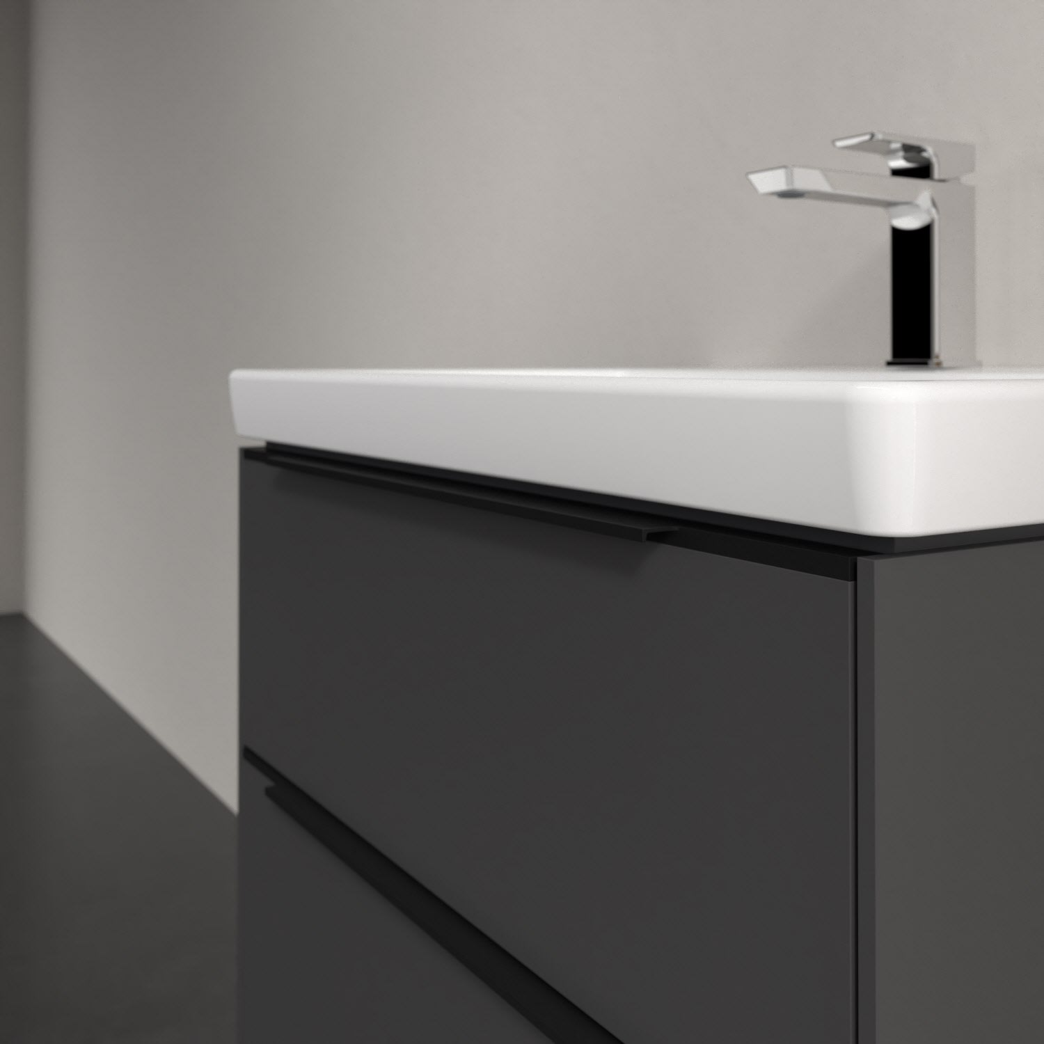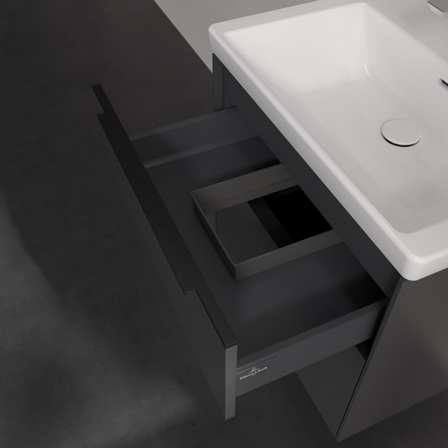 Der Waschtischunterschrank der Kollektion Subway 3.0 von Villeroy & Boch besticht durch gradliniges, zeitloses Design und großzügigen Stauraum. Front und Korpus sind mit einer hochwertigen Direktbeschichtung oder Lackierung, deren Anti-Fingerprint-Oberfläche unschönen Fingerabdrücken vorbeugt, versehen. Zwei voll ausziehbare Schubladen mit rutschhemmenden Böden, Selbsteinzug-Funktion sowie einer integrierten kleinen Accessory-Box bieten extra viel Platz für Pflege- und Hygieneartikel. Die dezente Griffleiste sorgt für einfache Handhabung und bildet einen besonderen Design-Akzent.