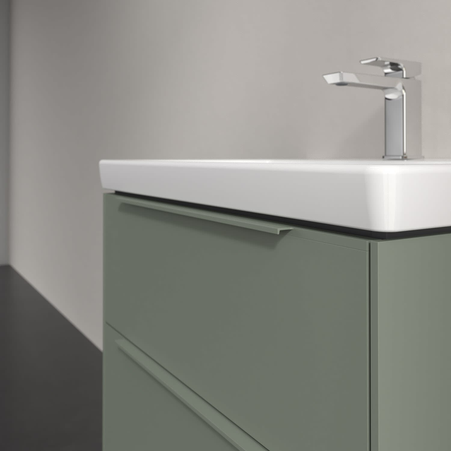 Der Waschtischunterschrank der Kollektion Subway 3.0 von Villeroy & Boch besticht durch gradliniges, zeitloses Design und großzügigen Stauraum. Front und Korpus sind mit einer hochwertigen Direktbeschichtung oder Lackierung, deren Anti-Fingerprint-Oberfläche unschönen Fingerabdrücken vorbeugt, versehen. Zwei voll ausziehbare Schubladen mit rutschhemmenden Böden, Selbsteinzug-Funktion sowie einer integrierten kleinen Accessory-Box bieten extra viel Platz für Pflege- und Hygieneartikel. Die dezente Griffleiste sorgt für einfache Handhabung und bildet einen besonderen Design-Akzent.