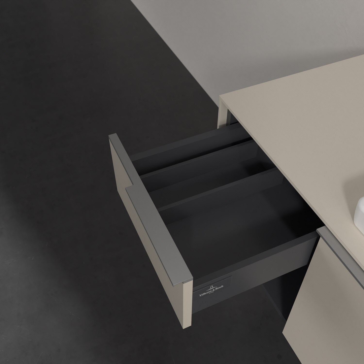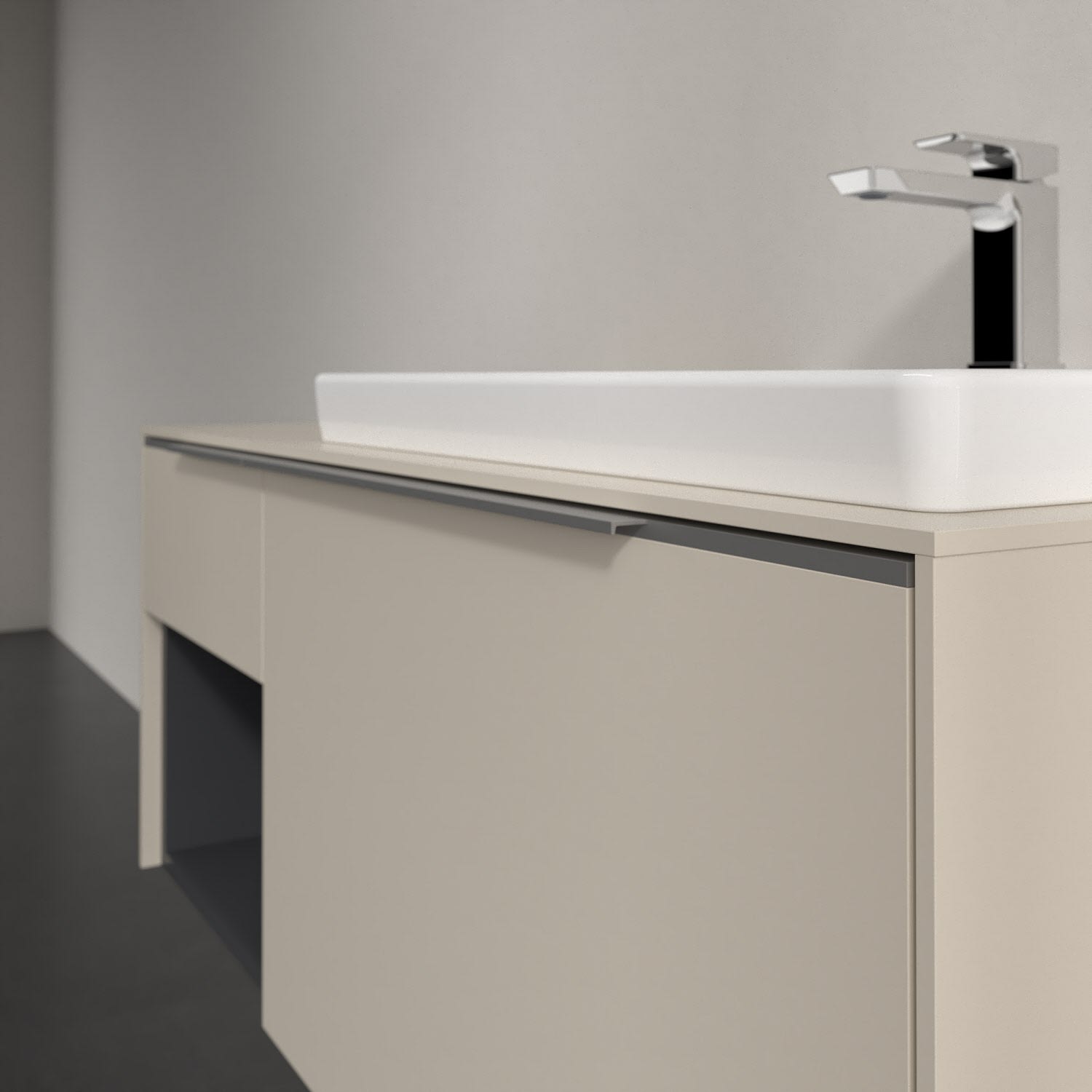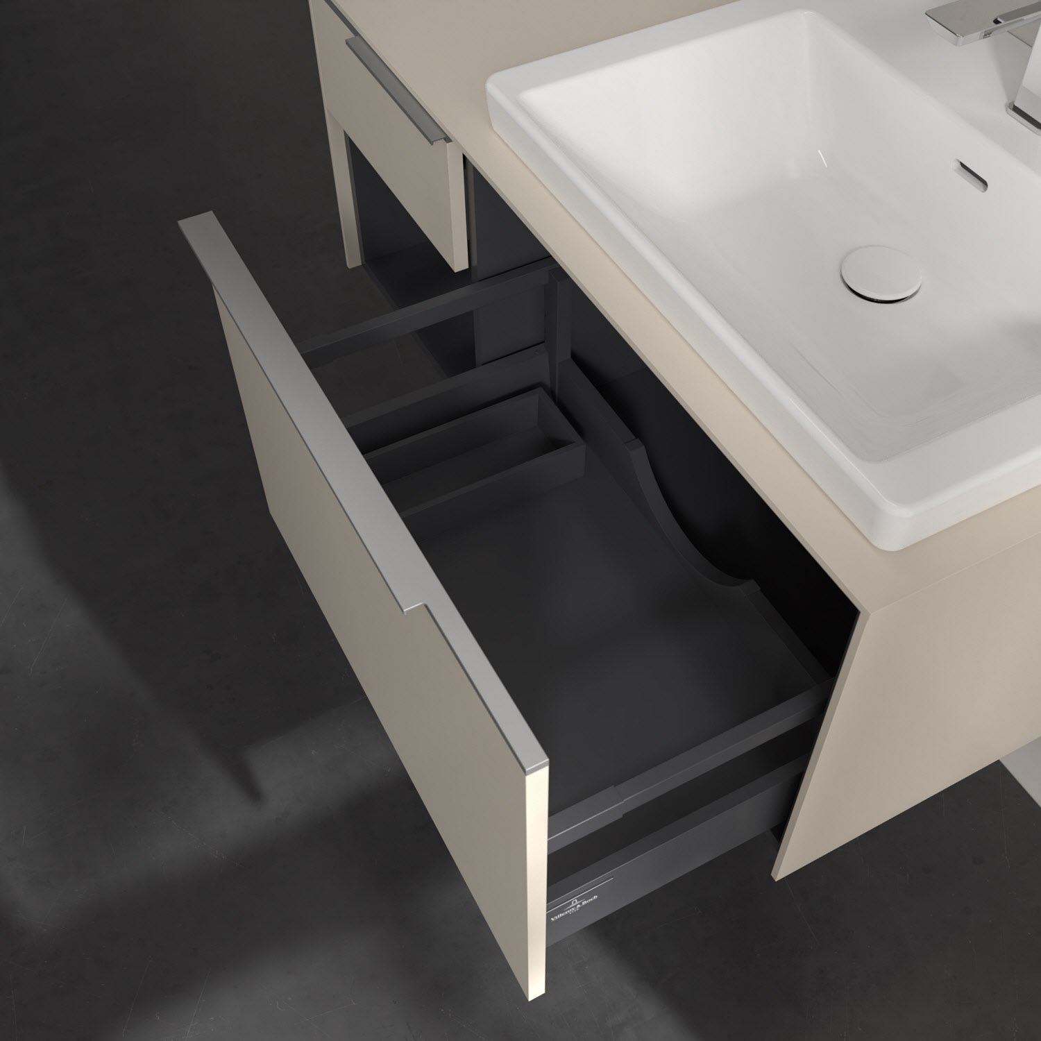 Der Waschtischunterschrank der Kollektion Subway 3.0 von Villeroy & Boch besticht durch gradliniges, zeitloses Design und großzügigen Stauraum. Front und Korpus sind mit einer hochwertigen Direktbeschichtung oder Lackierung, deren Anti-Fingerprint-Oberfläche unschönen Fingerabdrücken vorbeugt, versehen. Zwei voll ausziehbare Schubladen mit rutschhemmenden Böden, Selbsteinzug-Funktion sowie zwei integrierten kleinen Accessory-Boxen bieten extra viel Platz für Pflege- und Hygieneartikel. Linkerhand schafft ein Regalelement zusätzlichen Stauraum und sorgt dafür, dass wichtige Utensilien wie Handtücher sofort griffbereit sind. Die dezente Griffleiste sorgt für einfache Handhabung und bildet einen besonderen Design-Akzent.