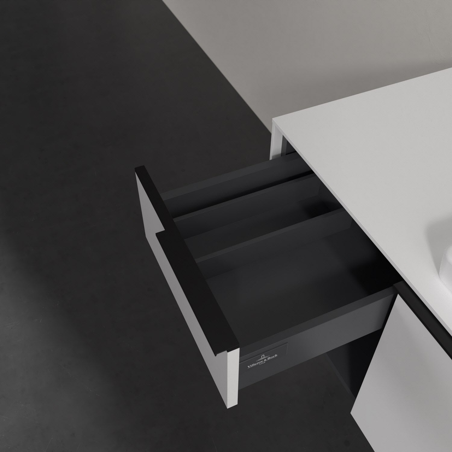Der Waschtischunterschrank der Kollektion Subway 3.0 von Villeroy & Boch besticht durch gradliniges, zeitloses Design und großzügigen Stauraum. Front und Korpus sind mit einer hochwertigen Direktbeschichtung oder Lackierung, deren Anti-Fingerprint-Oberfläche unschönen Fingerabdrücken vorbeugt, versehen. Zwei voll ausziehbare Schubladen mit rutschhemmenden Böden, Selbsteinzug-Funktion sowie zwei integrierten kleinen Accessory-Boxen bieten extra viel Platz für Pflege- und Hygieneartikel. Linkerhand schafft ein Regalelement zusätzlichen Stauraum und sorgt dafür, dass wichtige Utensilien wie Handtücher sofort griffbereit sind. Die dezente Griffleiste sorgt für einfache Handhabung und bildet einen besonderen Design-Akzent.