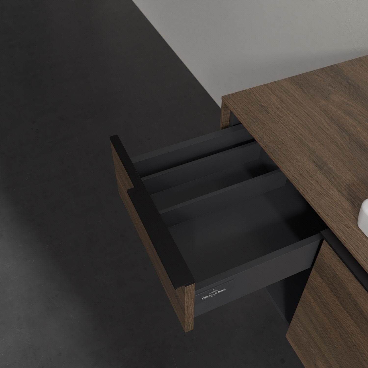 Der Waschtischunterschrank der Kollektion Subway 3.0 von Villeroy & Boch besticht durch gradliniges, zeitloses Design und großzügigen Stauraum. Front und Korpus sind mit einer hochwertigen Direktbeschichtung oder Lackierung, deren Anti-Fingerprint-Oberfläche unschönen Fingerabdrücken vorbeugt, versehen. Zwei voll ausziehbare Schubladen mit rutschhemmenden Böden, Selbsteinzug-Funktion sowie zwei integrierten kleinen Accessory-Boxen bieten extra viel Platz für Pflege- und Hygieneartikel. Linkerhand schafft ein Regalelement zusätzlichen Stauraum und sorgt dafür, dass wichtige Utensilien wie Handtücher sofort griffbereit sind. Die dezente Griffleiste sorgt für einfache Handhabung und bildet einen besonderen Design-Akzent.