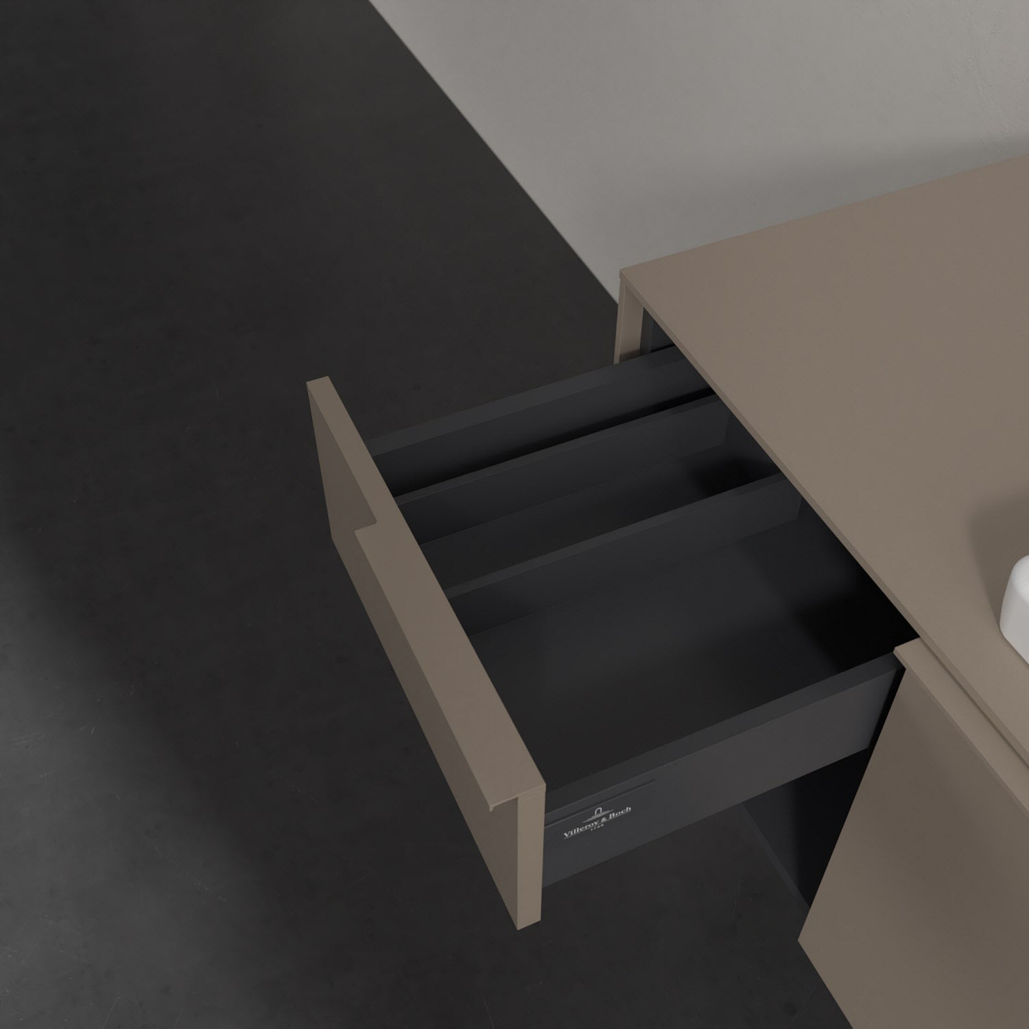 Der Waschtischunterschrank der Kollektion Subway 3.0 von Villeroy & Boch besticht durch gradliniges, zeitloses Design und großzügigen Stauraum. Front und Korpus sind mit einer hochwertigen Direktbeschichtung oder Lackierung, deren Anti-Fingerprint-Oberfläche unschönen Fingerabdrücken vorbeugt, versehen. Zwei voll ausziehbare Schubladen mit rutschhemmenden Böden, Selbsteinzug-Funktion sowie zwei integrierten kleinen Accessory-Boxen bieten extra viel Platz für Pflege- und Hygieneartikel. Linkerhand schafft ein Regalelement zusätzlichen Stauraum und sorgt dafür, dass wichtige Utensilien wie Handtücher sofort griffbereit sind. Die dezente Griffleiste sorgt für einfache Handhabung und bildet einen besonderen Design-Akzent.