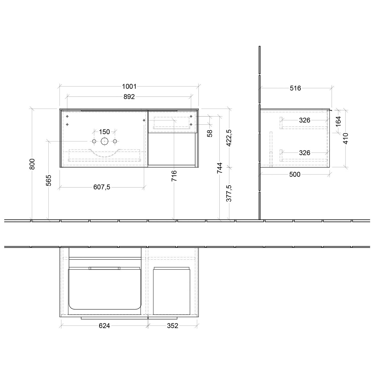 Villeroy & Boch Subway 3.0 Waschtischunterschrank 100,1 cm, 2 Auszüge und Regal rechts, ohne LED-Beleuchtung