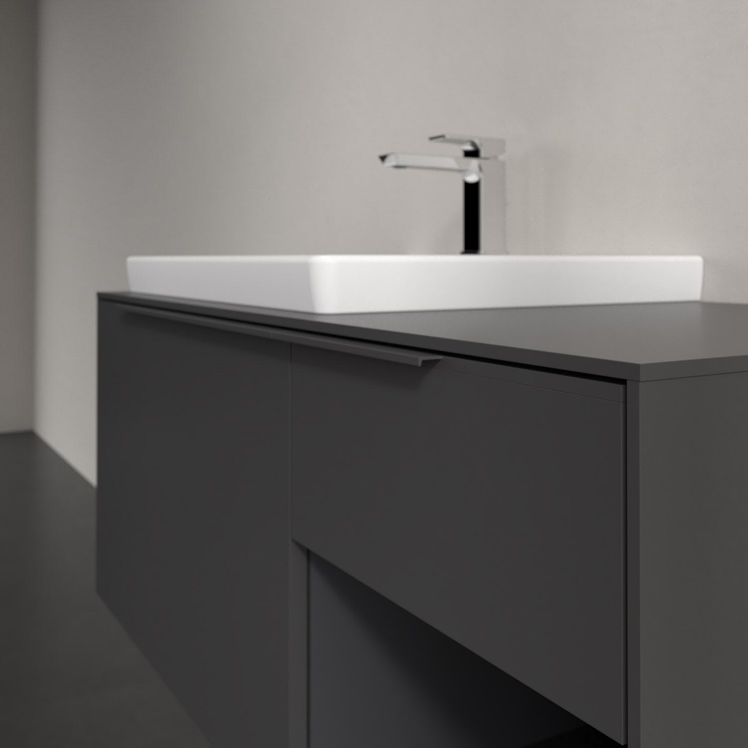 Der Waschtischunterschrank der Kollektion Subway 3.0 von Villeroy & Boch besticht durch gradliniges, zeitloses Design und großzügigen Stauraum. Front und Korpus sind mit einer hochwertigen Direktbeschichtung oder Lackierung, deren Anti-Fingerprint-Oberfläche unschönen Fingerabdrücken vorbeugt, versehen. Zwei voll ausziehbare Schubladen mit rutschhemmenden Böden, Selbsteinzug-Funktion sowie zwei integrierten kleinen Accessory-Boxen bieten extra viel Platz für Pflege- und Hygieneartikel. Rechterhand schafft ein Regalelement zusätzlichen Stauraum und sorgt dafür, dass wichtige Utensilien wie Handtücher sofort griffbereit sind. Die dezente Griffleiste sorgt für einfache Handhabung und bildet einen besonderen Design-Akzent.