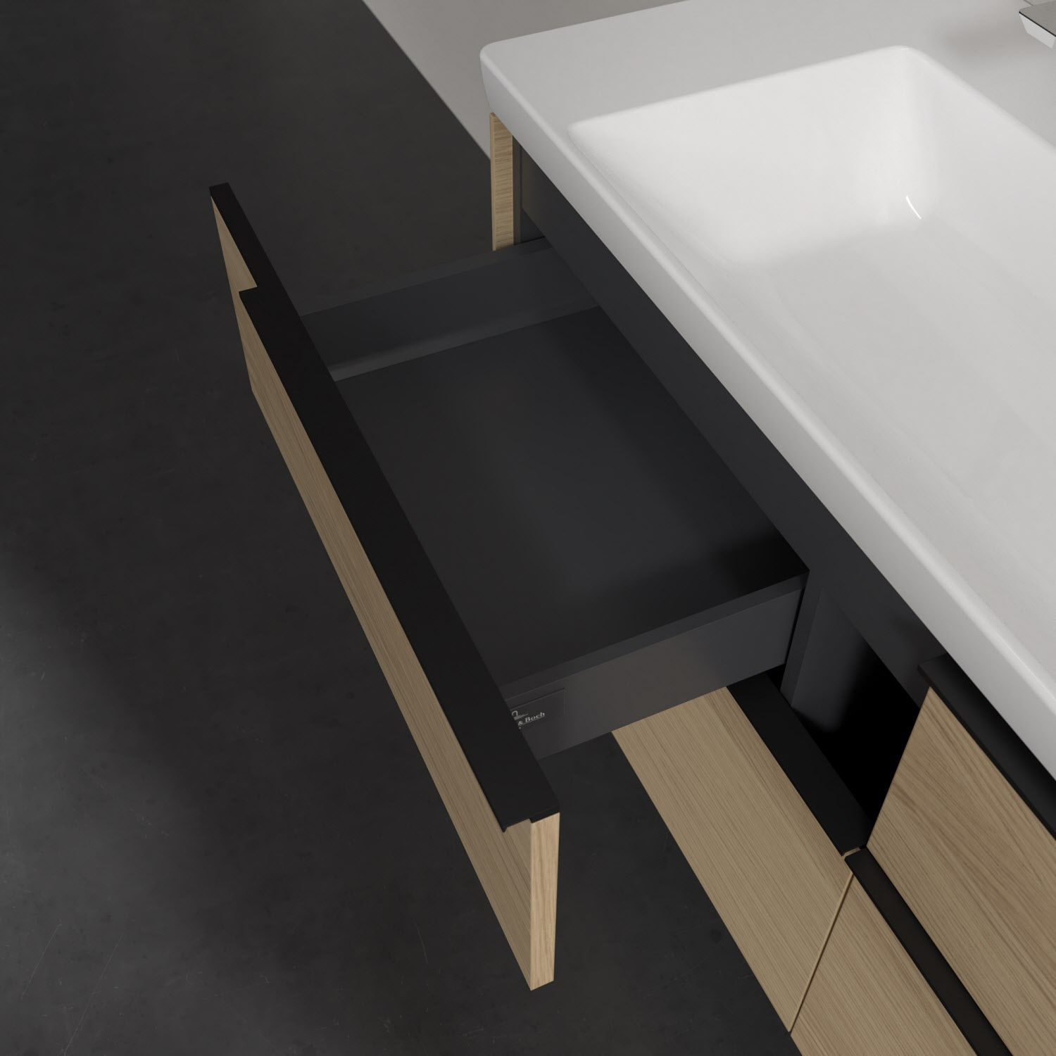 Der Waschtischunterschrank der Kollektion Subway 3.0 von Villeroy & Boch besticht durch gradliniges, zeitloses Design und großzügigen Stauraum. Front und Korpus sind mit einer hochwertigen Direktbeschichtung oder Lackierung, deren Anti-Fingerprint-Oberfläche unschönen Fingerabdrücken vorbeugt, versehen. Vier voll ausziehbare Schubladen mit rutschhemmenden Böden, Selbsteinzug-Funktion sowie zwei integrierten kleinen Accessory-Boxen bieten extra viel Platz für Pflege- und Hygieneartikel. Die dezente Griffleiste sorgt für einfache Handhabung und bildet einen besonderen Design-Akzent.