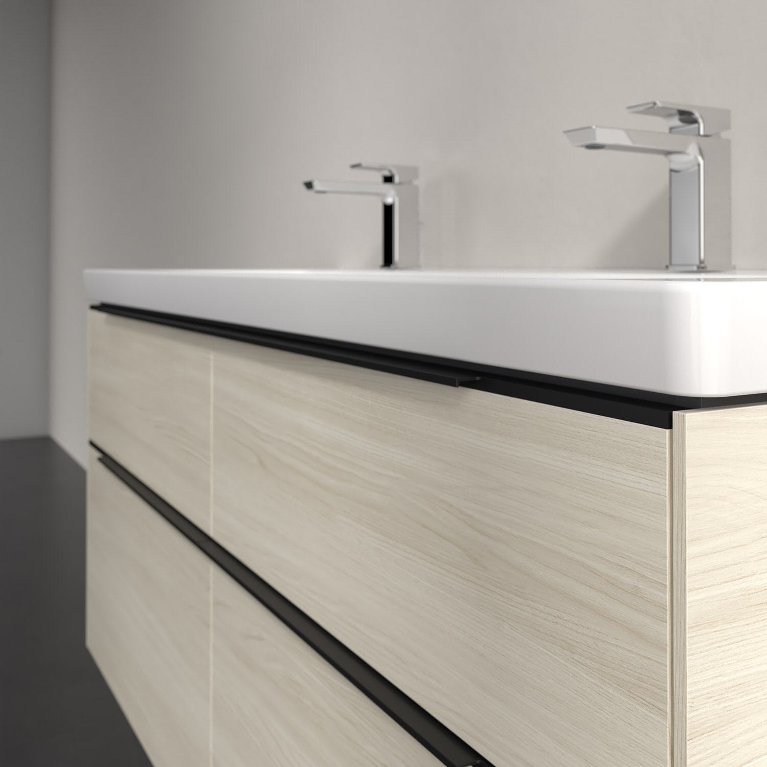 Der Waschtischunterschrank der Kollektion Subway 3.0 von Villeroy & Boch besticht durch gradliniges, zeitloses Design und großzügigen Stauraum. Front und Korpus sind mit einer hochwertigen Direktbeschichtung oder Lackierung, deren Anti-Fingerprint-Oberfläche unschönen Fingerabdrücken vorbeugt, versehen. Vier voll ausziehbare Schubladen mit rutschhemmenden Böden, Selbsteinzug-Funktion sowie zwei integrierten kleinen Accessory-Boxen bieten extra viel Platz für Pflege- und Hygieneartikel. Die dezente Griffleiste sorgt für einfache Handhabung und bildet einen besonderen Design-Akzent.