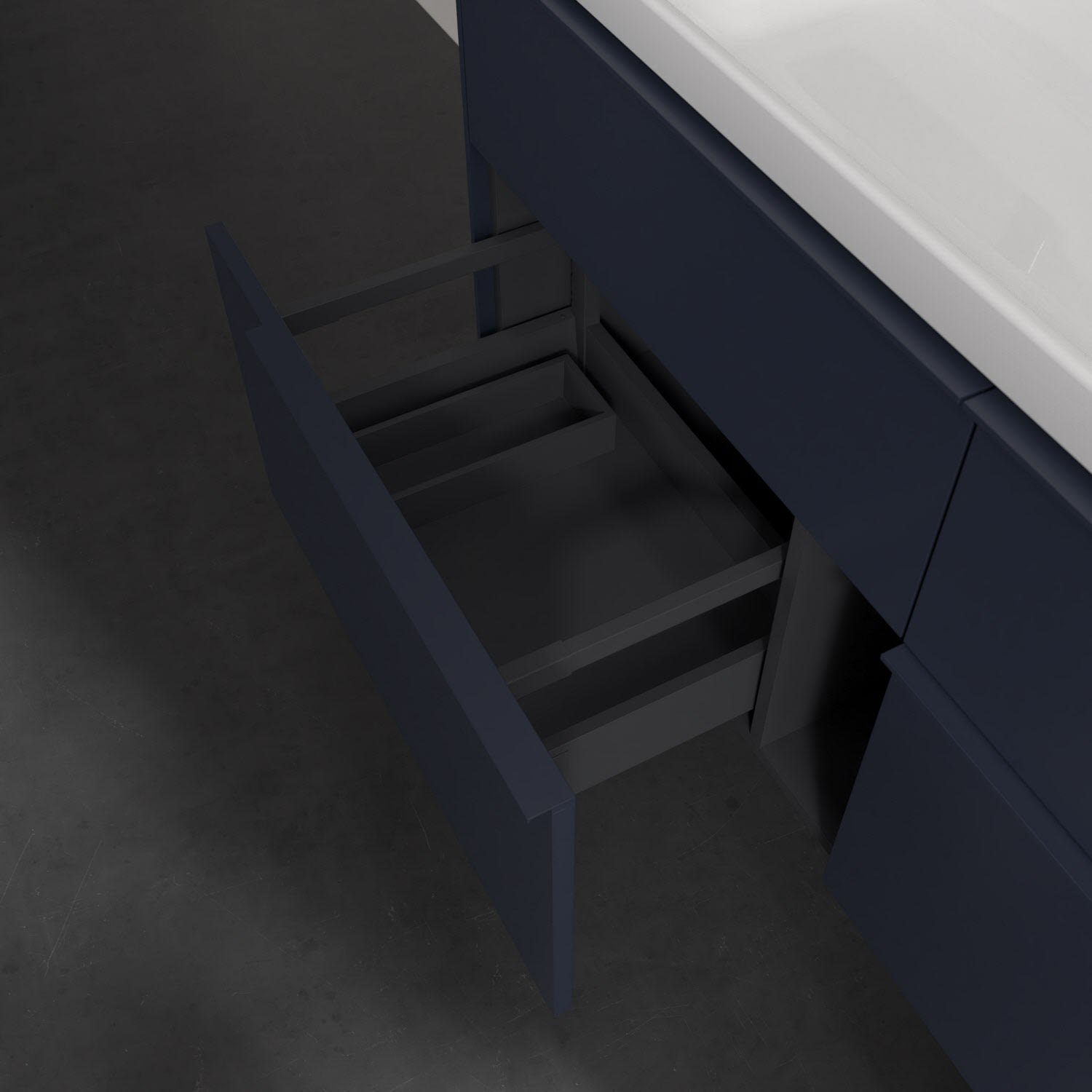 - 4 Auszüge als voll ausziehbare Schublade mit Selbsteinzug-Funktion und rutschhemmenden Böden