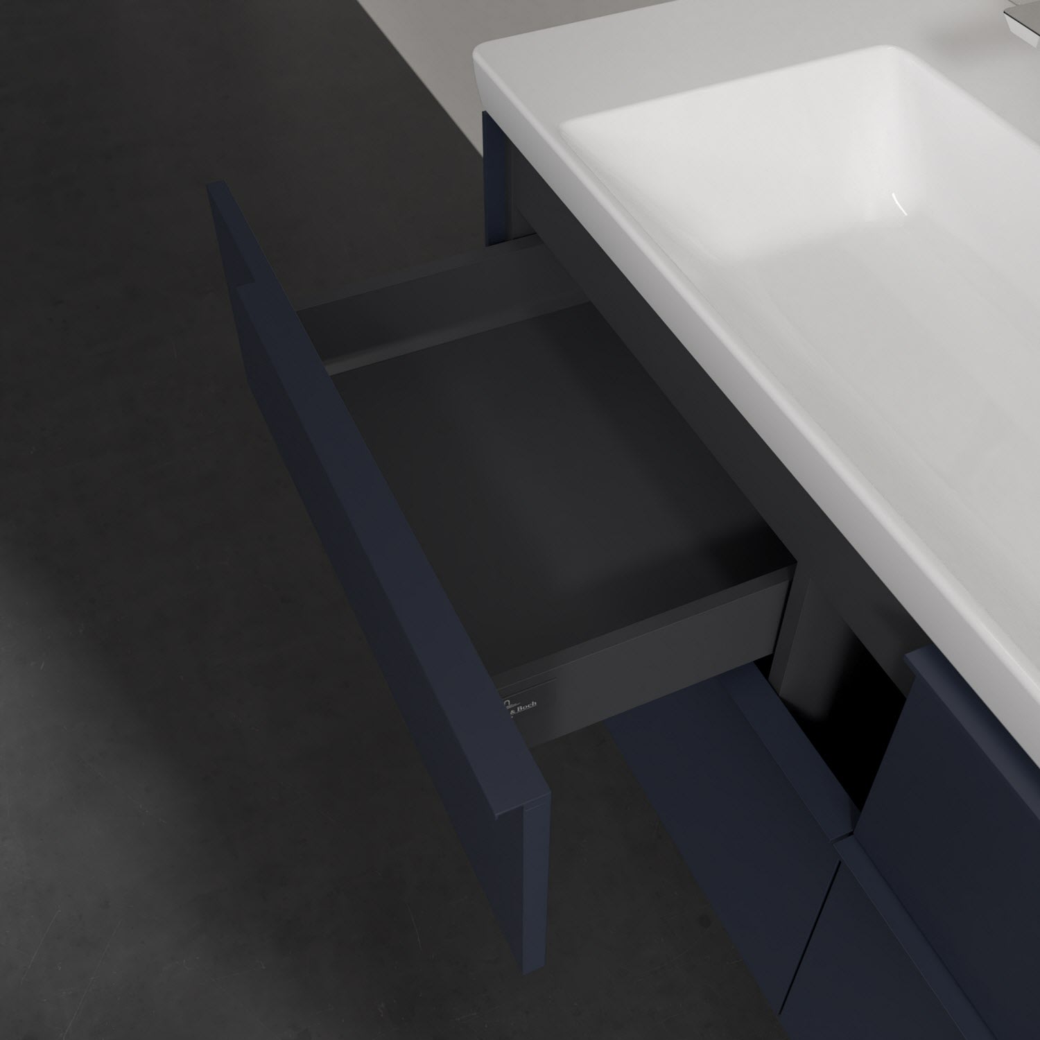 Der Waschtischunterschrank der Kollektion Subway 3.0 von Villeroy & Boch besticht durch gradliniges, zeitloses Design und großzügigen Stauraum. Front und Korpus sind mit einer hochwertigen Direktbeschichtung oder Lackierung, deren Anti-Fingerprint-Oberfläche unschönen Fingerabdrücken vorbeugt, versehen. Vier voll ausziehbare Schubladen mit rutschhemmenden Böden, Selbsteinzug-Funktion sowie zwei integrierten kleinen Accessory-Boxen bieten extra viel Platz für Pflege- und Hygieneartikel. Die dezente Griffleiste sorgt für einfache Handhabung und bildet einen besonderen Design-Akzent.
