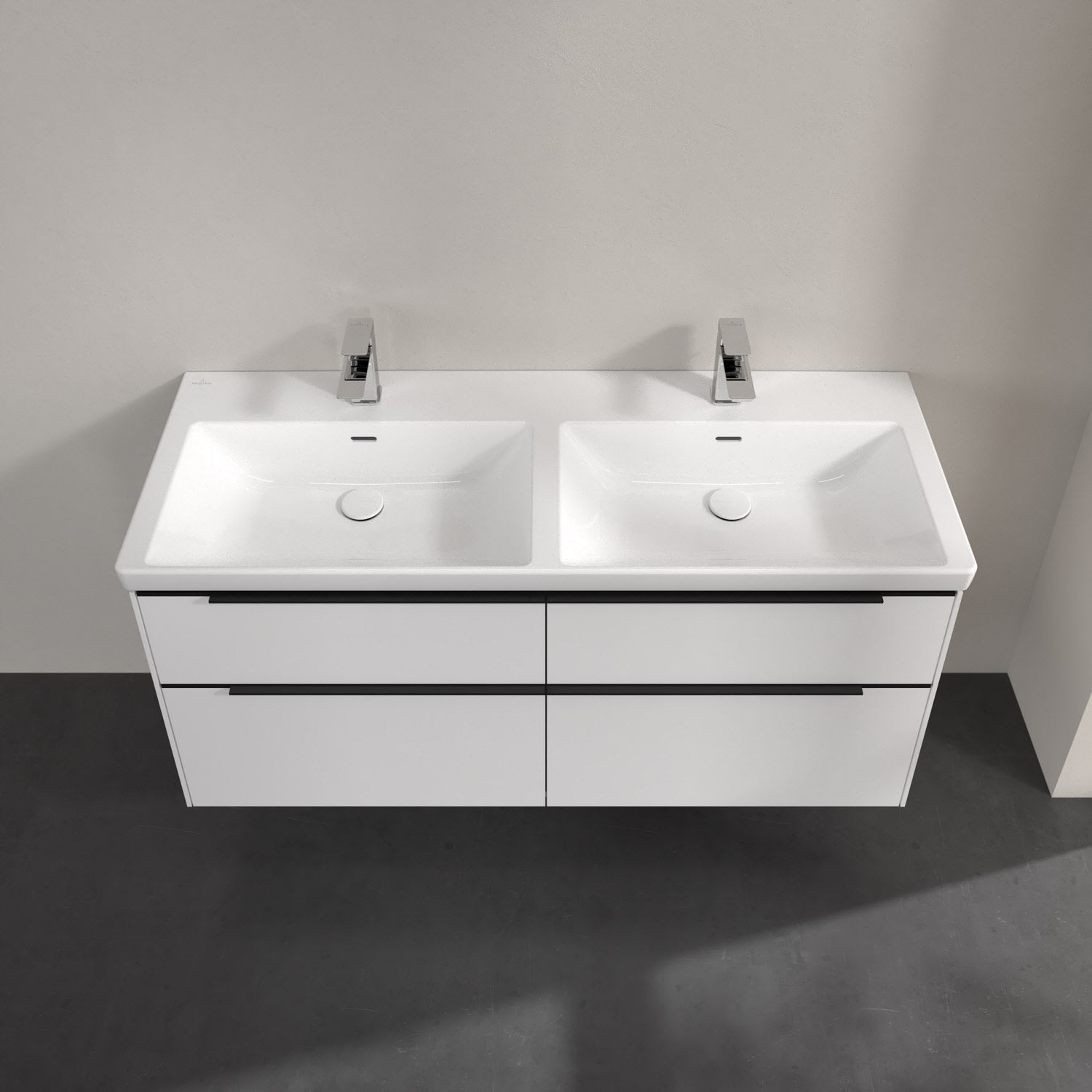 Villeroy & Boch Subway 3.0 Schrank-Doppelwaschtisch 130 cm, mit 2 Hahnlöchern, mit Überlauf