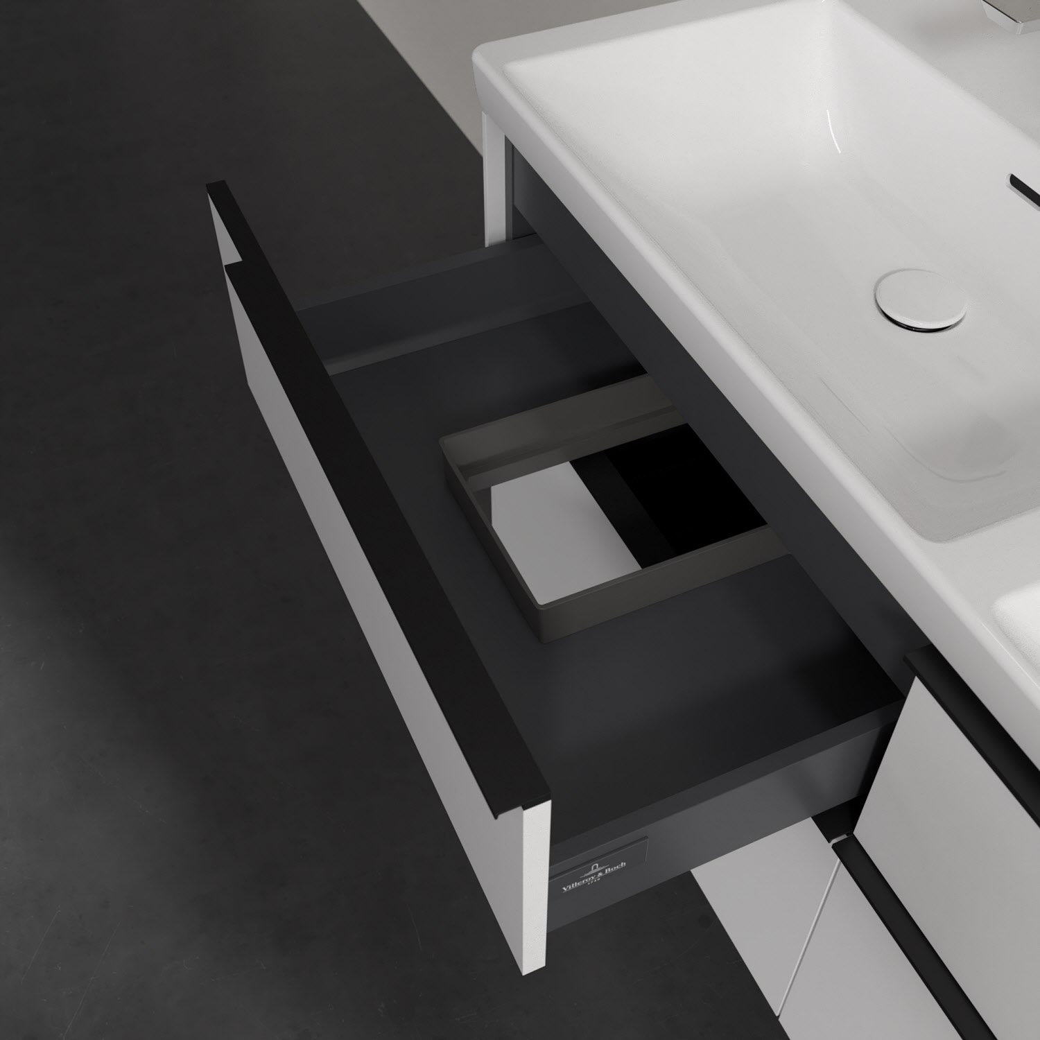 Der Waschtischunterschrank der Kollektion Subway 3.0 von Villeroy & Boch besticht durch gradliniges, zeitloses Design und großzügigen Stauraum. Front und Korpus sind mit einer hochwertigen Direktbeschichtung oder Lackierung, deren Anti-Fingerprint-Oberfläche unschönen Fingerabdrücken vorbeugt, versehen. Vier voll ausziehbare Schubladen mit rutschhemmenden Böden, Selbsteinzug-Funktion sowie zwei integrierten kleinen Accessory-Boxen bieten extra viel Platz für Pflege- und Hygieneartikel. Die dezente Griffleiste sorgt für einfache Handhabung und bildet einen besonderen Design-Akzent.