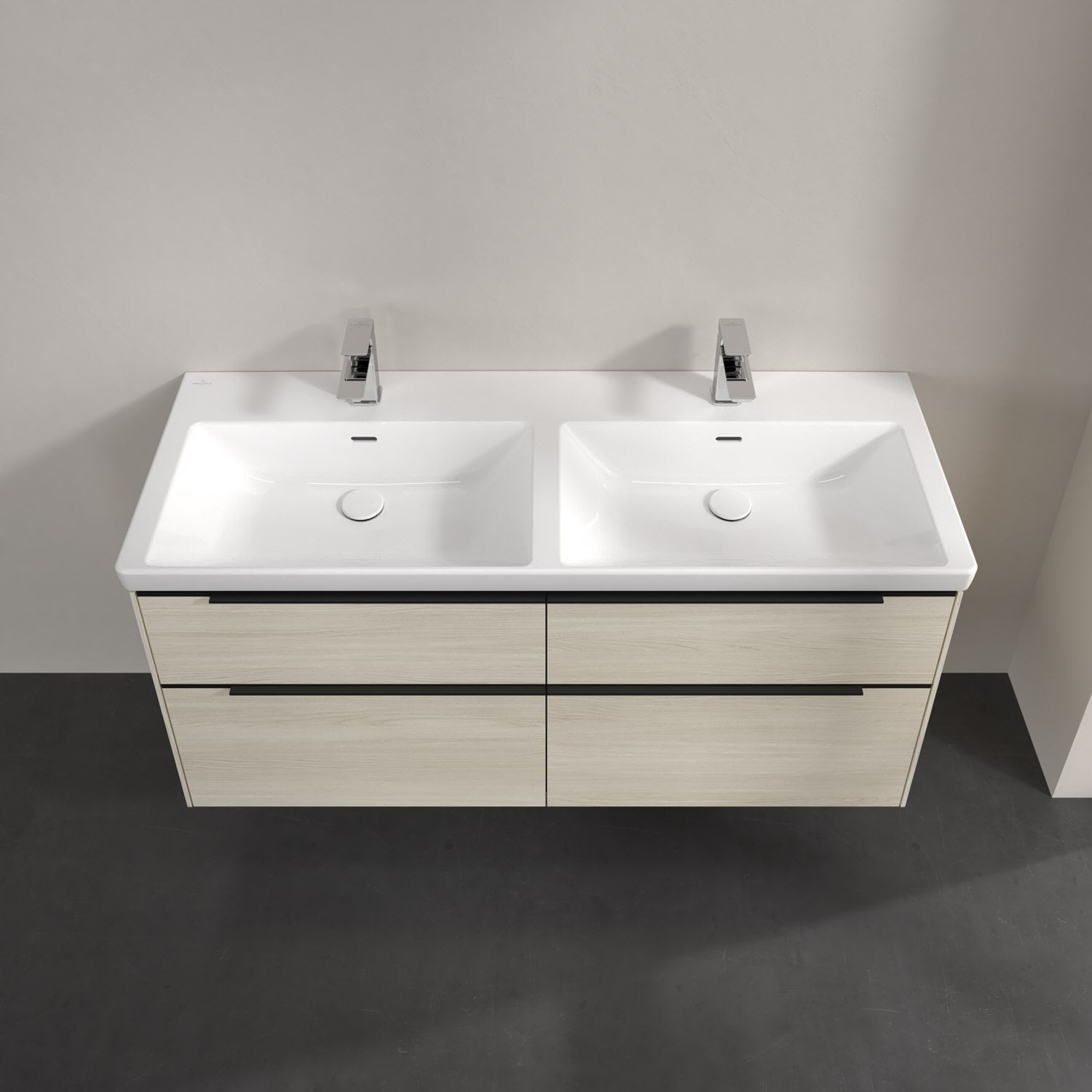Villeroy & Boch Subway 3.0 Schrank-Doppelwaschtisch 130 cm, mit 2 Hahnlöchern, mit Überlauf