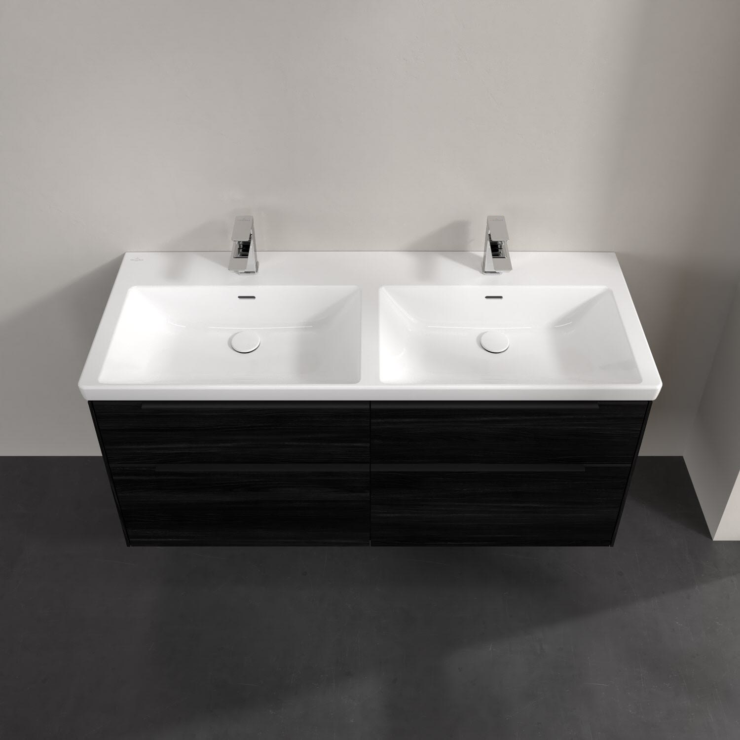 Villeroy & Boch Subway 3.0 Schrank-Doppelwaschtisch 130 cm, mit 2 Hahnlöchern, mit Überlauf