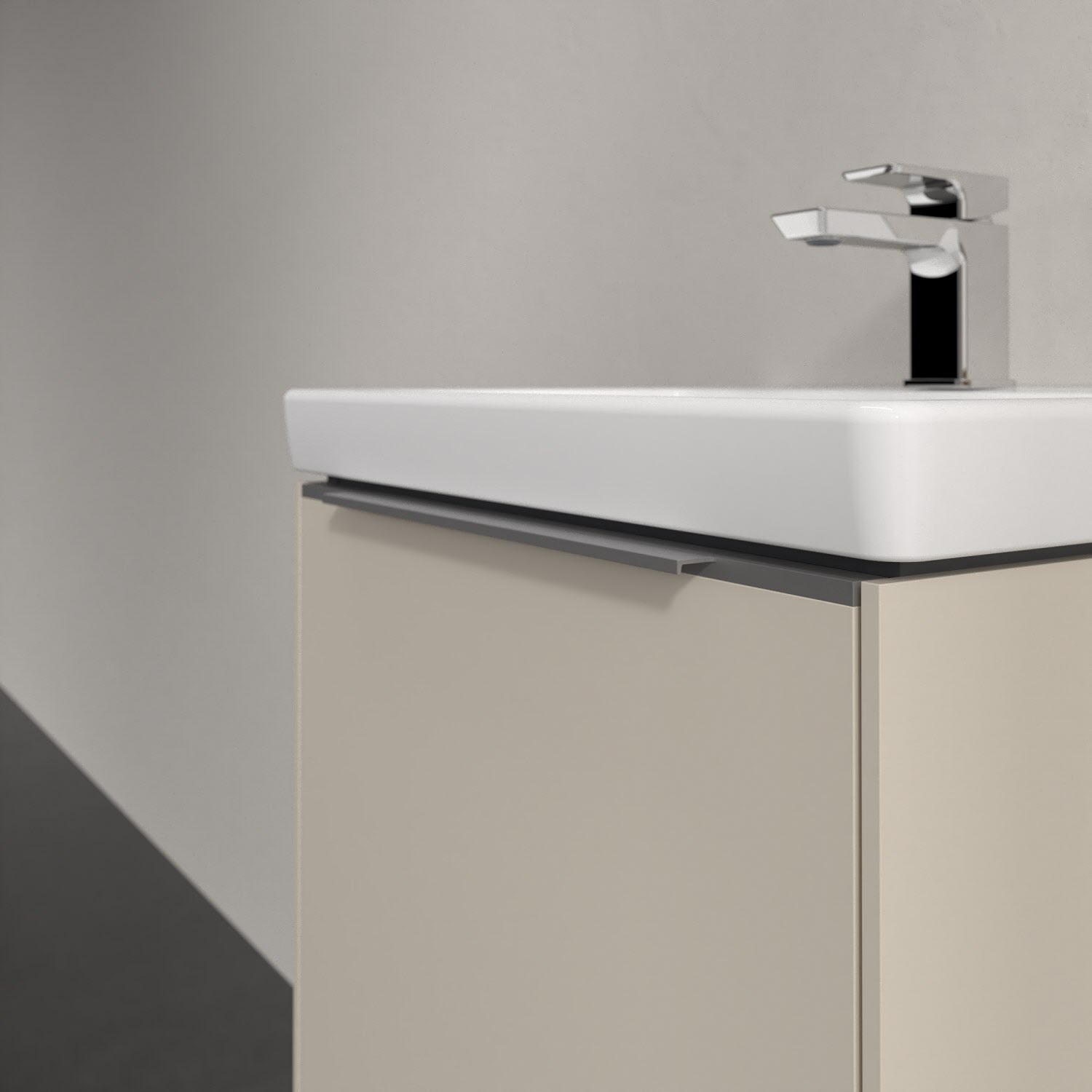 Der Waschtischunterschrank der Kollektion Subway 3.0 von Villeroy & Boch besticht durch gradliniges, zeitloses Design und großzügigen Stauraum. Front und Korpus sind mit einer hochwertigen Direktbeschichtung oder Lackierung, deren Anti-Fingerprint-Oberfläche unschönen Fingerabdrücken vorbeugt, versehen. Für eine einfache Handhabung sorgt eine dezente Griffleiste. Eine voll ausziehbare Schublade mit rutschhemmendem Boden, Selbsteinzug-Funktion und zwei integrierten kleinen Accessory-Boxen bietet Platz für Pflege- und Hygieneartikel. Integriert ist eine funktionale LED-Leiste, die mit neutralweißem Licht das Innenleben beleuchtet. Highlight ist die LED-Bodenbeleuchtung, die stimmungsvolles, sanftes Licht ins Bad bringt und nachts als Orientierungshilfe dient. Helligkeit und Lichtfarbe können über den kapazitiven Sensor eingestellt werden. Die LED-Leuchten lassen sich durch einen Fachhandwerker austauschen.