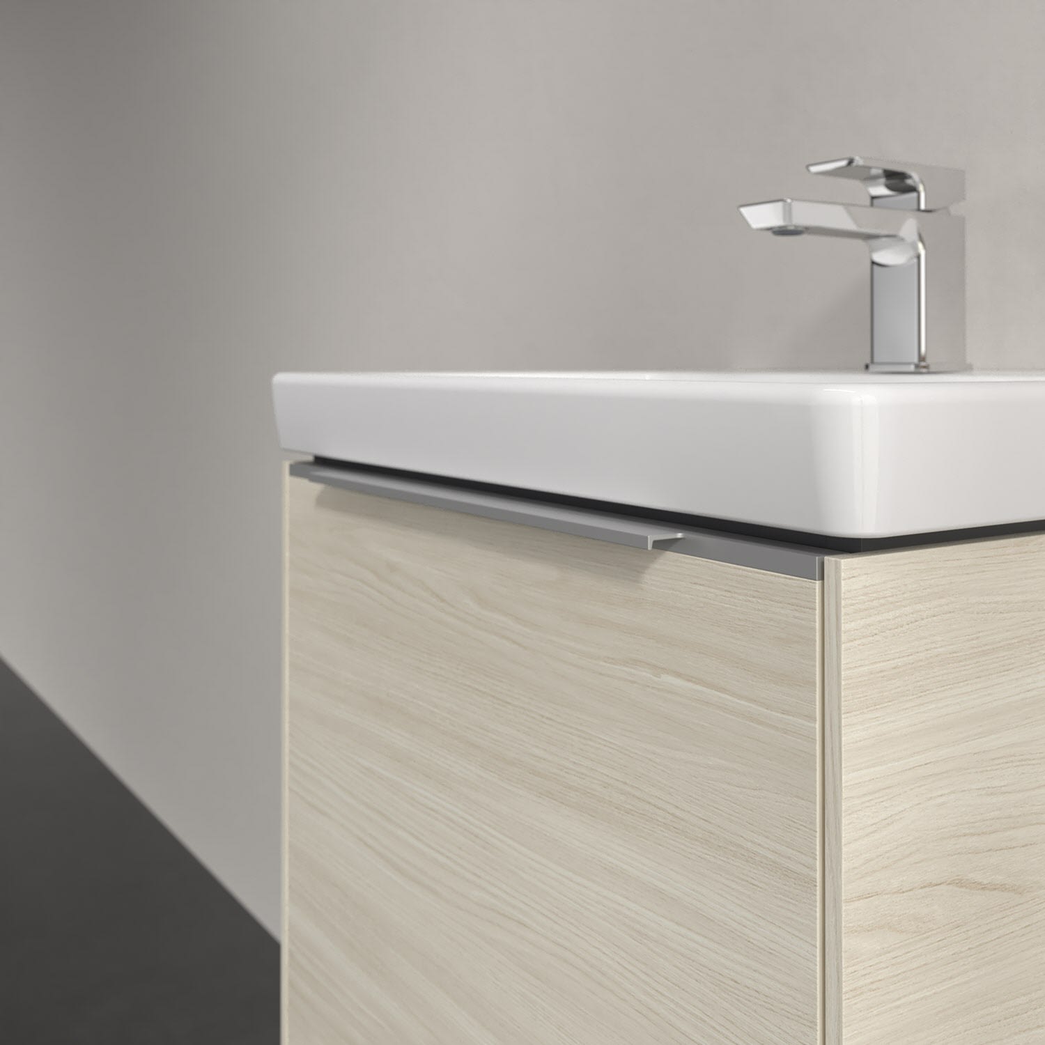 Der Waschtischunterschrank der Kollektion Subway 3.0 von Villeroy & Boch besticht durch gradliniges, zeitloses Design und großzügigen Stauraum. Front und Korpus sind mit einer hochwertigen Direktbeschichtung oder Lackierung, deren Anti-Fingerprint-Oberfläche unschönen Fingerabdrücken vorbeugt, versehen. Für eine einfache Handhabung sorgt eine dezente Griffleiste. Eine voll ausziehbare Schublade mit rutschhemmendem Boden, Selbsteinzug-Funktion und zwei integrierten kleinen Accessory-Boxen bietet Platz für Pflege- und Hygieneartikel. Integriert ist eine funktionale LED-Leiste, die mit neutralweißem Licht das Innenleben beleuchtet. Highlight ist die LED-Bodenbeleuchtung, die stimmungsvolles, sanftes Licht ins Bad bringt und nachts als Orientierungshilfe dient. Helligkeit und Lichtfarbe können über den kapazitiven Sensor eingestellt werden. Die LED-Leuchten lassen sich durch einen Fachhandwerker austauschen.
