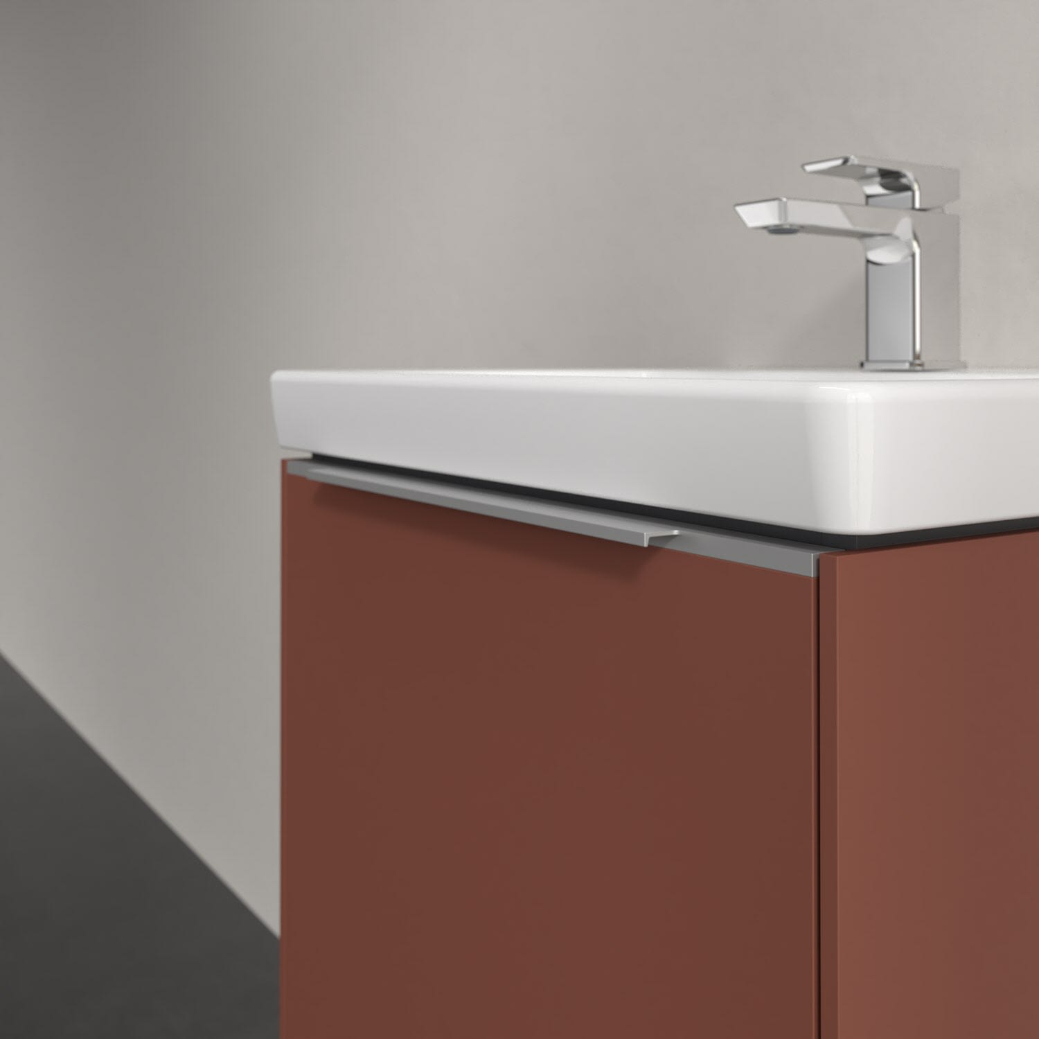 Der Waschtischunterschrank der Kollektion Subway 3.0 von Villeroy & Boch besticht durch gradliniges, zeitloses Design und großzügigen Stauraum. Front und Korpus sind mit einer hochwertigen Direktbeschichtung oder Lackierung, deren Anti-Fingerprint-Oberfläche unschönen Fingerabdrücken vorbeugt, versehen. Für eine einfache Handhabung sorgt eine dezente Griffleiste. Eine voll ausziehbare Schublade mit rutschhemmendem Boden, Selbsteinzug-Funktion und zwei integrierten kleinen Accessory-Boxen bietet Platz für Pflege- und Hygieneartikel. Integriert ist eine funktionale LED-Leiste, die mit neutralweißem Licht das Innenleben beleuchtet. Highlight ist die LED-Bodenbeleuchtung, die stimmungsvolles, sanftes Licht ins Bad bringt und nachts als Orientierungshilfe dient. Helligkeit und Lichtfarbe können über den kapazitiven Sensor eingestellt werden. Die LED-Leuchten lassen sich durch einen Fachhandwerker austauschen.