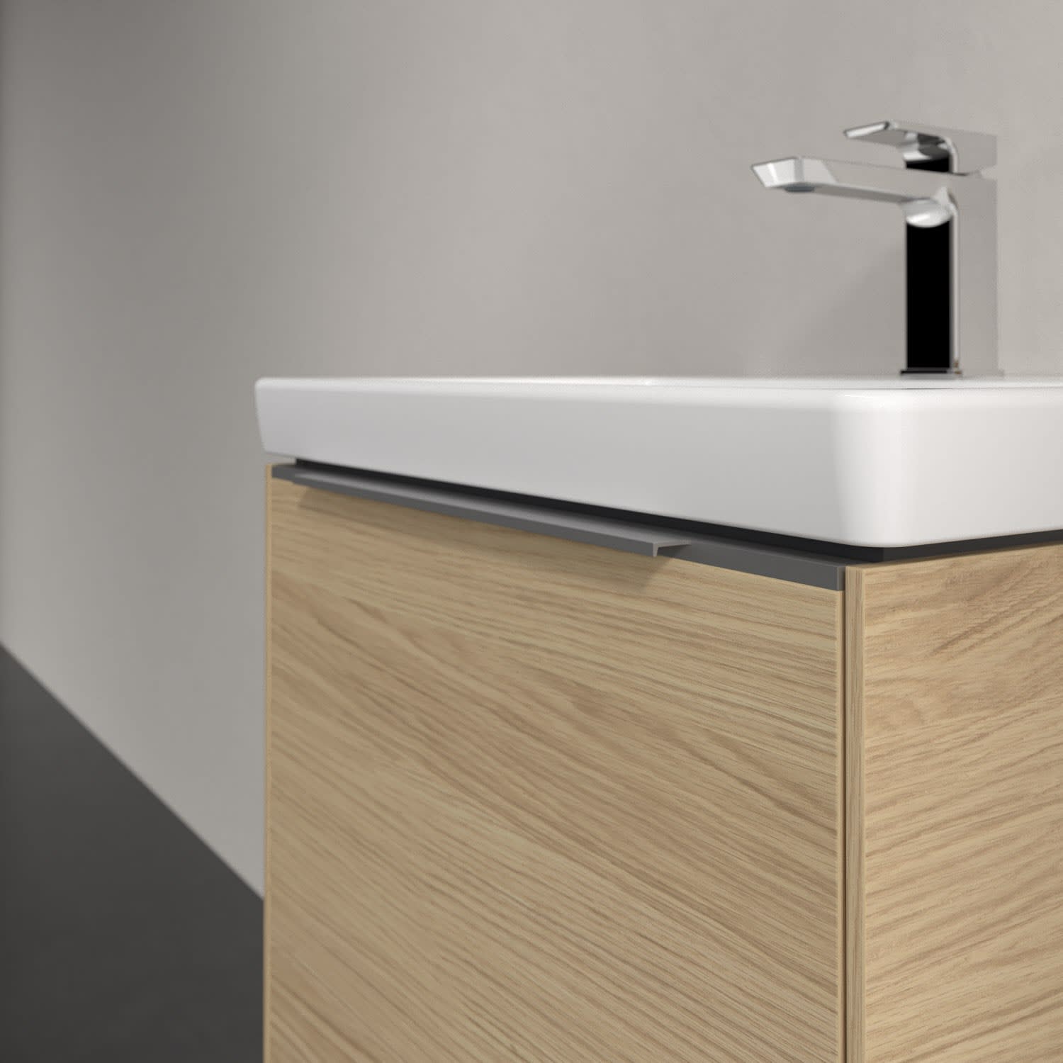 Der Waschtischunterschrank der Kollektion Subway 3.0 von Villeroy & Boch besticht durch gradliniges, zeitloses Design und großzügigen Stauraum. Front und Korpus sind mit einer hochwertigen Direktbeschichtung oder Lackierung, deren Anti-Fingerprint-Oberfläche unschönen Fingerabdrücken vorbeugt, versehen. Für eine einfache Handhabung sorgt eine dezente Griffleiste. Eine voll ausziehbare Schublade mit rutschhemmendem Boden, Selbsteinzug-Funktion und zwei integrierten kleinen Accessory-Boxen bietet Platz für Pflege- und Hygieneartikel. Integriert ist eine funktionale LED-Leiste, die mit neutralweißem Licht das Innenleben beleuchtet. Highlight ist die LED-Bodenbeleuchtung, die stimmungsvolles, sanftes Licht ins Bad bringt und nachts als Orientierungshilfe dient. Helligkeit und Lichtfarbe können über den kapazitiven Sensor eingestellt werden. Die LED-Leuchten lassen sich durch einen Fachhandwerker austauschen.