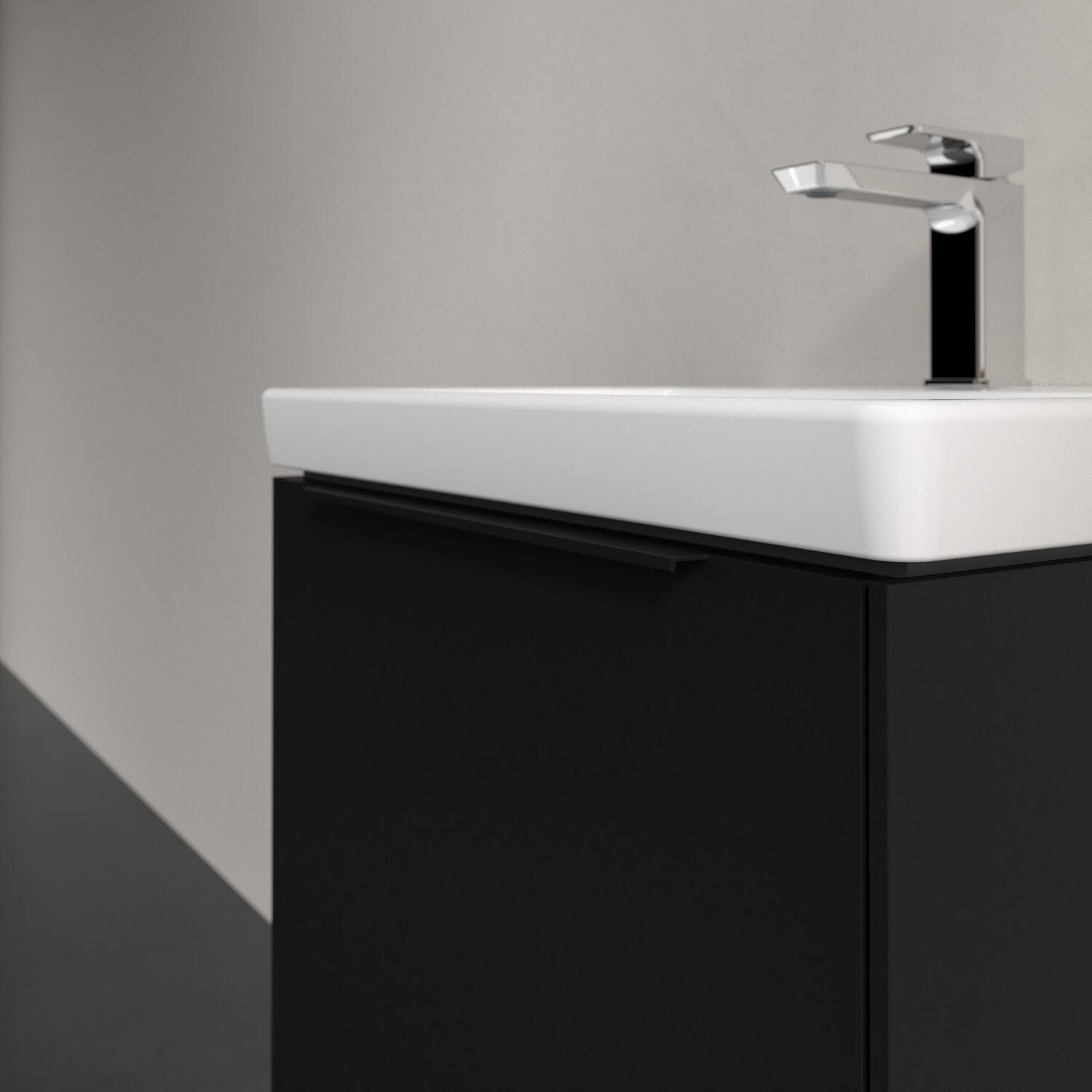 Der Waschtischunterschrank der Kollektion Subway 3.0 von Villeroy & Boch besticht durch gradliniges, zeitloses Design und großzügigen Stauraum. Front und Korpus sind mit einer hochwertigen Direktbeschichtung oder Lackierung, deren Anti-Fingerprint-Oberfläche unschönen Fingerabdrücken vorbeugt, versehen. Für eine einfache Handhabung sorgt eine dezente Griffleiste. Eine voll ausziehbare Schublade mit rutschhemmendem Boden, Selbsteinzug-Funktion und zwei integrierten kleinen Accessory-Boxen bietet Platz für Pflege- und Hygieneartikel. Integriert ist eine funktionale LED-Leiste, die mit neutralweißem Licht das Innenleben beleuchtet. Highlight ist die LED-Bodenbeleuchtung, die stimmungsvolles, sanftes Licht ins Bad bringt und nachts als Orientierungshilfe dient. Helligkeit und Lichtfarbe können über den kapazitiven Sensor eingestellt werden. Die LED-Leuchten lassen sich durch einen Fachhandwerker austauschen.