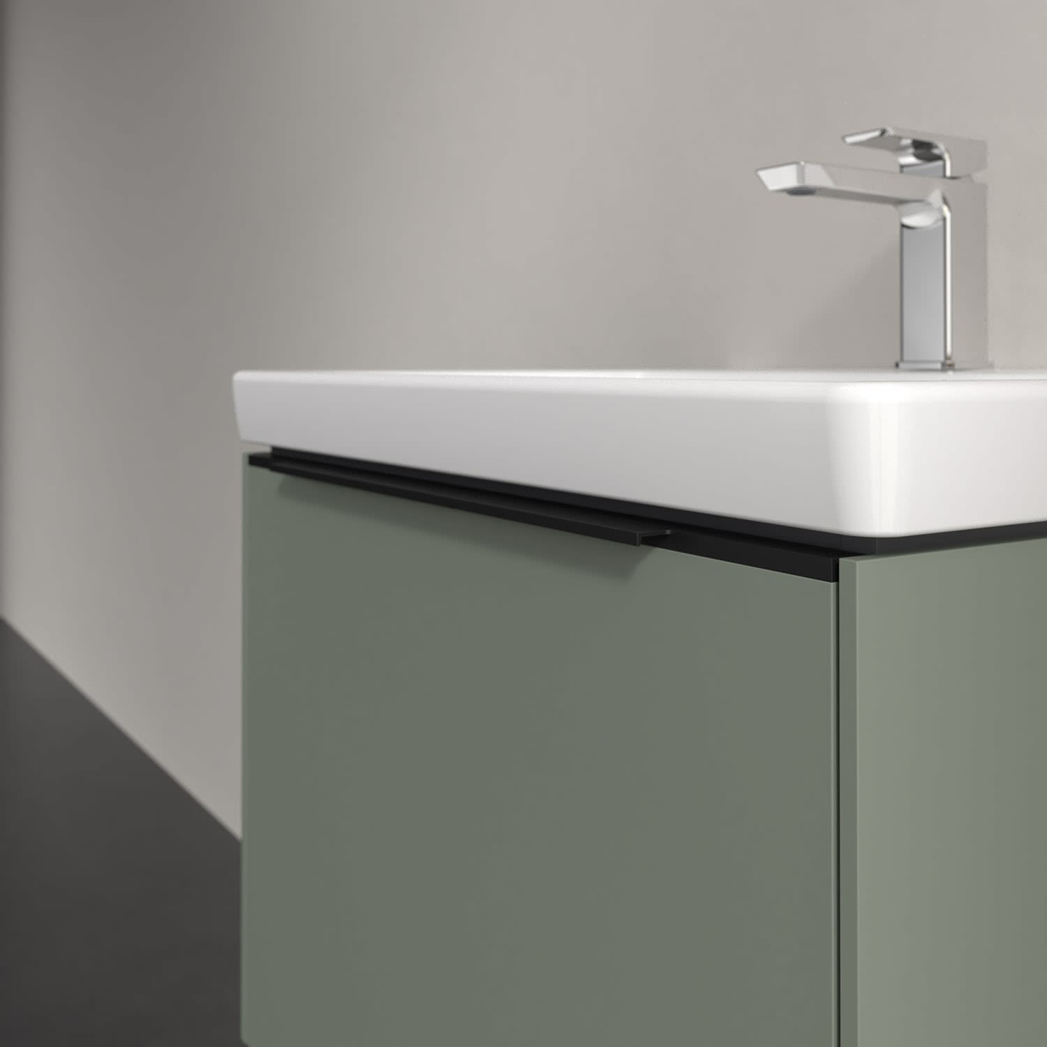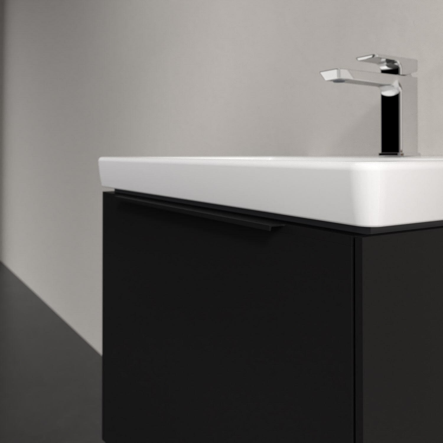 Der Waschtischunterschrank der Kollektion Subway 3.0 von Villeroy & Boch besticht durch gradliniges, zeitloses Design und großzügigen Stauraum. Front und Korpus sind mit einer hochwertigen Direktbeschichtung oder Lackierung, deren Anti-Fingerprint-Oberfläche unschönen Fingerabdrücken vorbeugt, versehen. Für eine einfache Handhabung sorgt eine dezente Griffleiste. Eine voll ausziehbare Schublade mit rutschhemmendem Boden, Selbsteinzug-Funktion und zwei integrierten kleinen Accessory-Boxen bietet Platz für Pflege- und Hygieneartikel. Integriert ist eine funktionale LED-Leiste, die mit neutralweißem Licht das Innenleben beleuchtet. Highlight ist die LED-Bodenbeleuchtung, die stimmungsvolles, sanftes Licht ins Bad bringt und nachts als Orientierungshilfe dient. Helligkeit und Lichtfarbe können über den kapazitiven Sensor eingestellt werden. Die LED-Leuchten lassen sich durch einen Fachhandwerker austauschen.