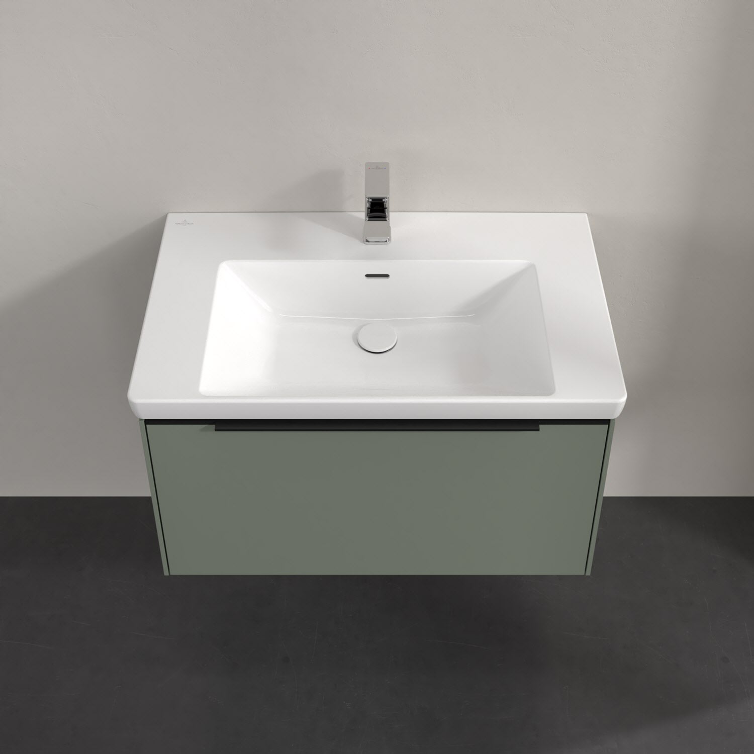 Der Waschtischunterschrank der Kollektion Subway 3.0 von Villeroy & Boch besticht durch gradliniges, zeitloses Design und großzügigen Stauraum. Front und Korpus sind mit einer hochwertigen Direktbeschichtung oder Lackierung, deren Anti-Fingerprint-Oberfläche unschönen Fingerabdrücken vorbeugt, versehen. Für eine einfache Handhabung sorgt eine dezente Griffleiste. Eine voll ausziehbare Schublade mit rutschhemmendem Boden, Selbsteinzug-Funktion und zwei integrierten kleinen Accessory-Boxen bietet Platz für Pflege- und Hygieneartikel. Integriert ist eine funktionale LED-Leiste, die mit neutralweißem Licht das Innenleben beleuchtet. Highlight ist die LED-Bodenbeleuchtung, die stimmungsvolles, sanftes Licht ins Bad bringt und nachts als Orientierungshilfe dient. Helligkeit und Lichtfarbe können über den kapazitiven Sensor eingestellt werden. Die LED-Leuchten lassen sich durch einen Fachhandwerker austauschen.