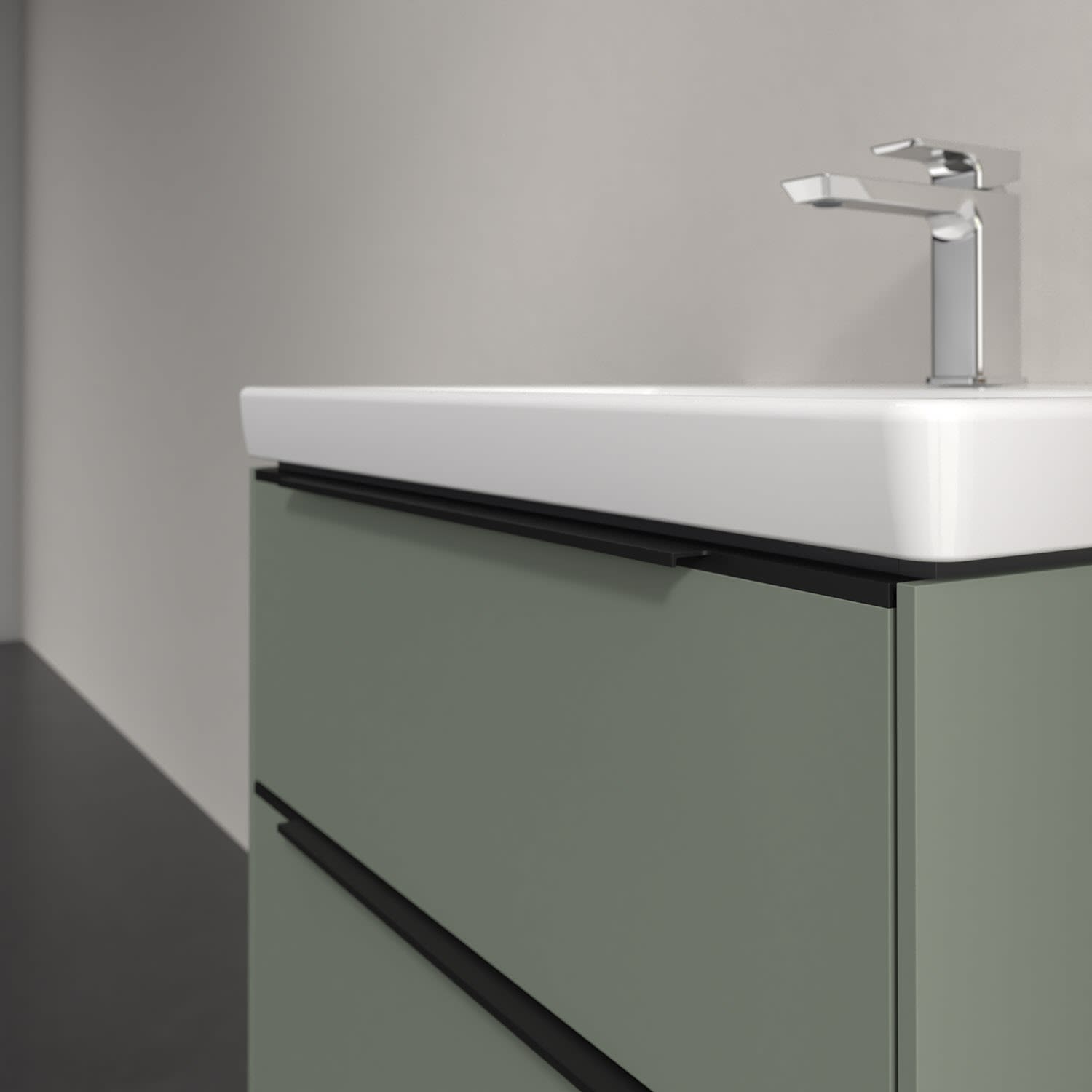 Der Waschtischunterschrank der Kollektion Subway 3.0 von Villeroy & Boch besticht durch gradliniges, zeitloses Design und großzügigen Stauraum. Front und Korpus sind mit einer hochwertigen Direktbeschichtung oder Lackierung, deren Anti-Fingerprint-Oberfläche unschönen Fingerabdrücken vorbeugt, versehen. Für eine einfache Handhabung sorgt eine dezente Griffleiste. Zwei voll ausziehbare Schubladen mit rutschhemmenden Böden, Selbsteinzug-Funktion und zwei integrierten kleinen Accessory-Boxen bieten besonders viel Platz für Pflege- und Hygieneartikel. Der obere Auszug ist mit einer funktionalen LED-Leiste ausgestattet, die mit neutralweißem Licht das Innenleben beleuchtet. Highlight ist die LED-Bodenbeleuchtung, die stimmungsvolles, sanftes Licht ins Bad bringt und nachts als Orientierungshilfe dient. Helligkeit und Lichtfarbe können über den kapazitiven Sensor eingestellt werden. Die LED-Leuchten lassen sich durch einen Fachhandwerker austauschen.