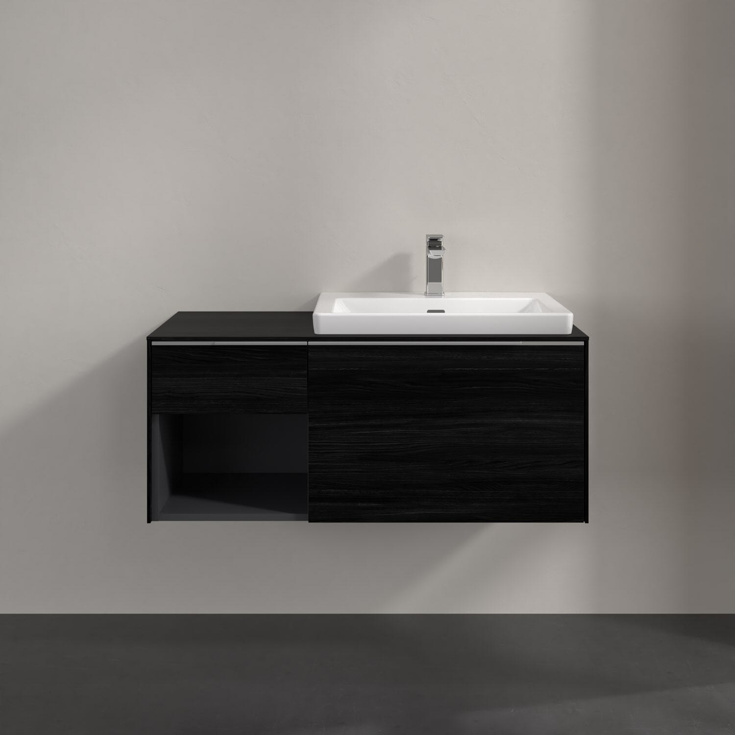 Villeroy & Boch Subway 3.0 Waschtischunterschrank 100,1 cm, 2 Auszüge und Regal links, mit LED-Beleuchtung