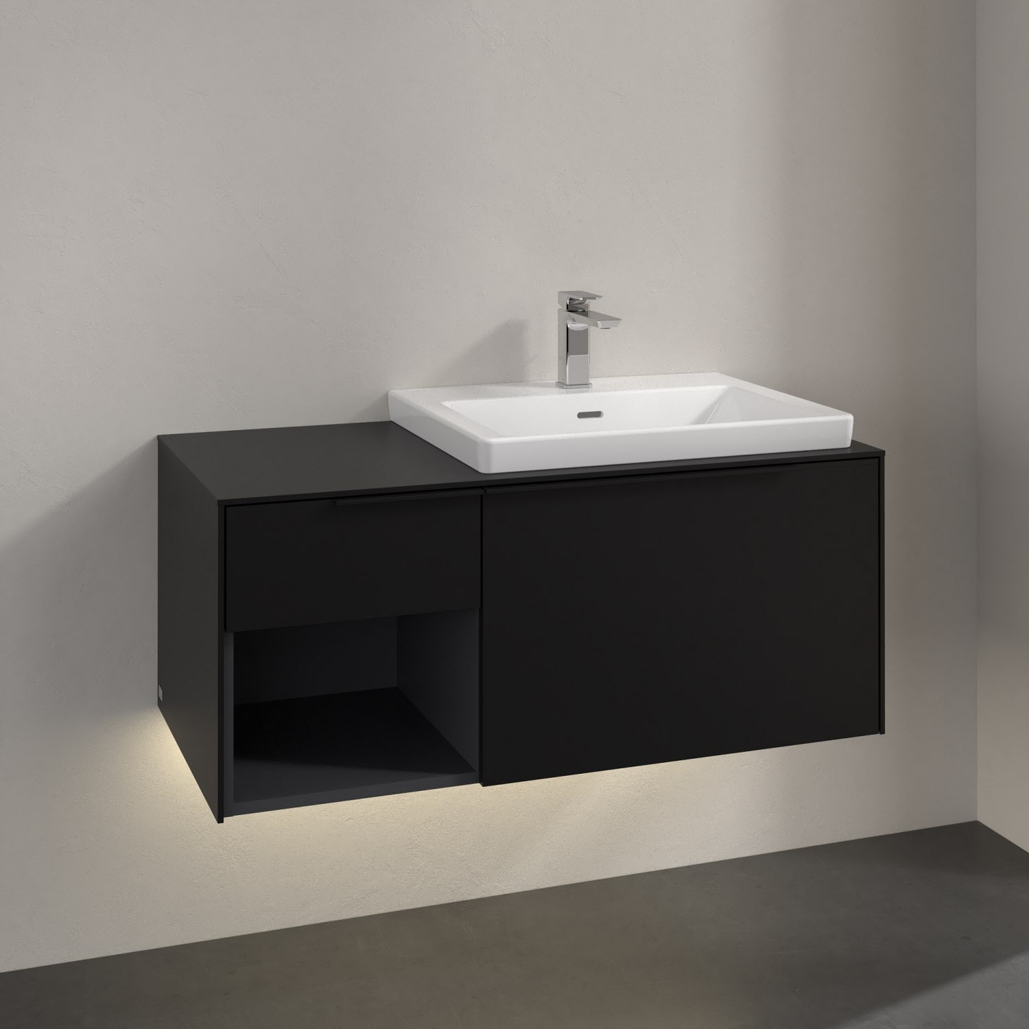 Villeroy & Boch Subway 3.0 Waschtischunterschrank 100,1 cm, 2 Auszüge und Regal links, mit LED-Beleuchtung