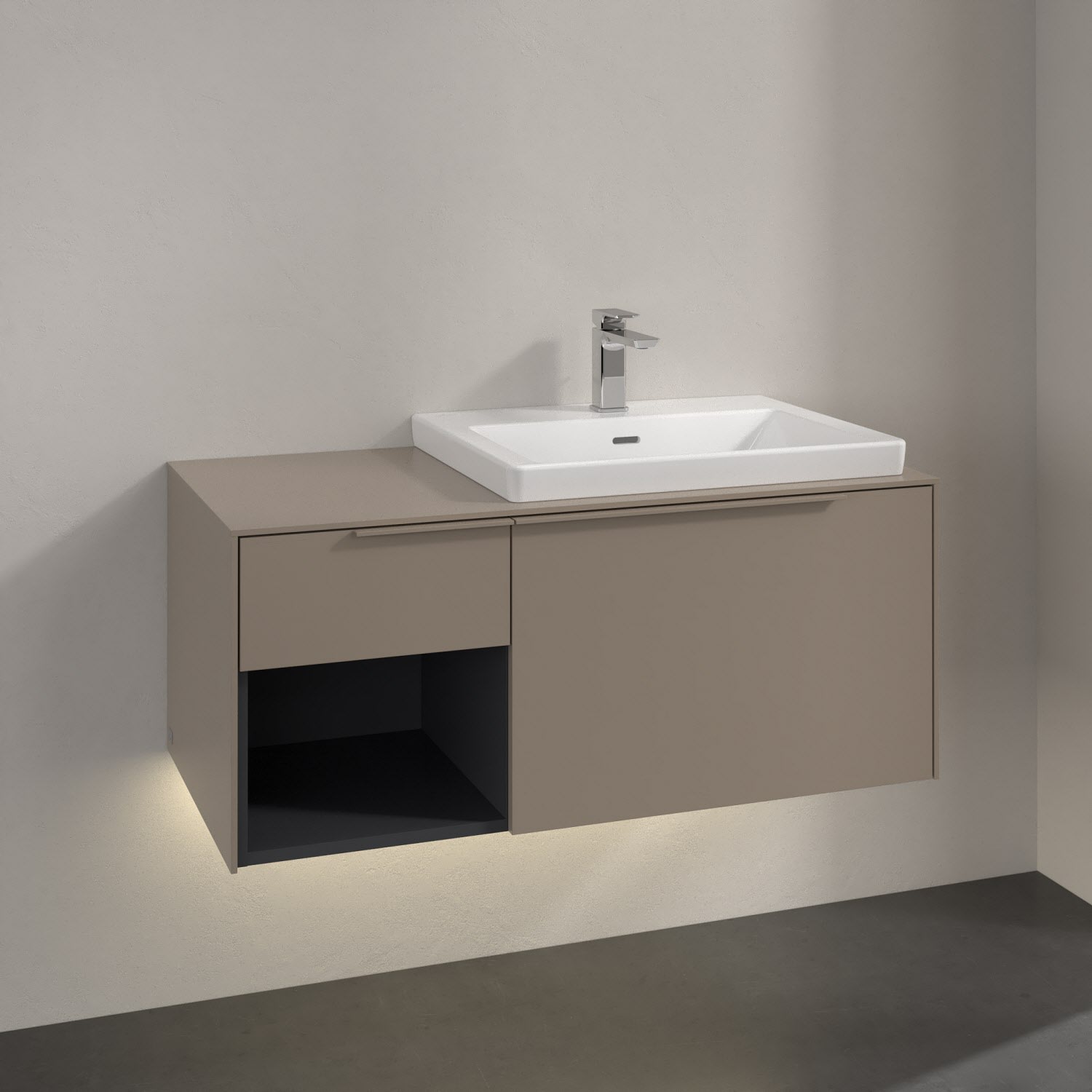 Villeroy & Boch Subway 3.0 Waschtischunterschrank 100,1 cm, 2 Auszüge und Regal links, mit LED-Beleuchtung