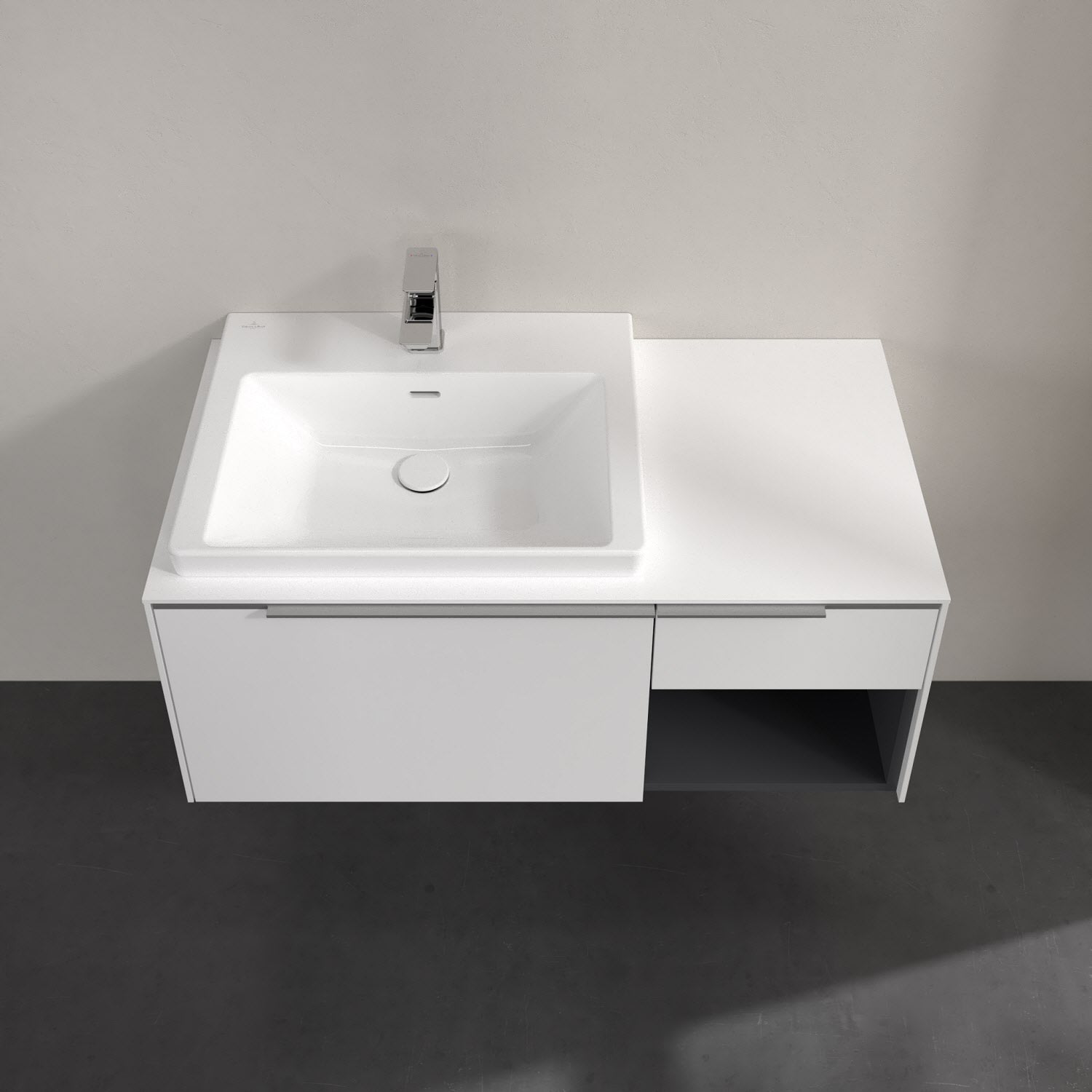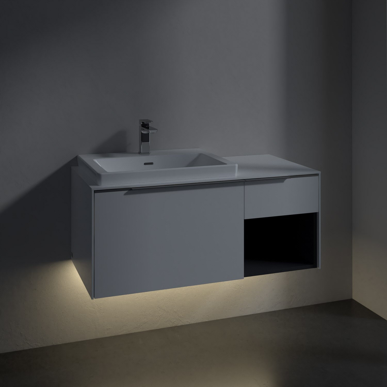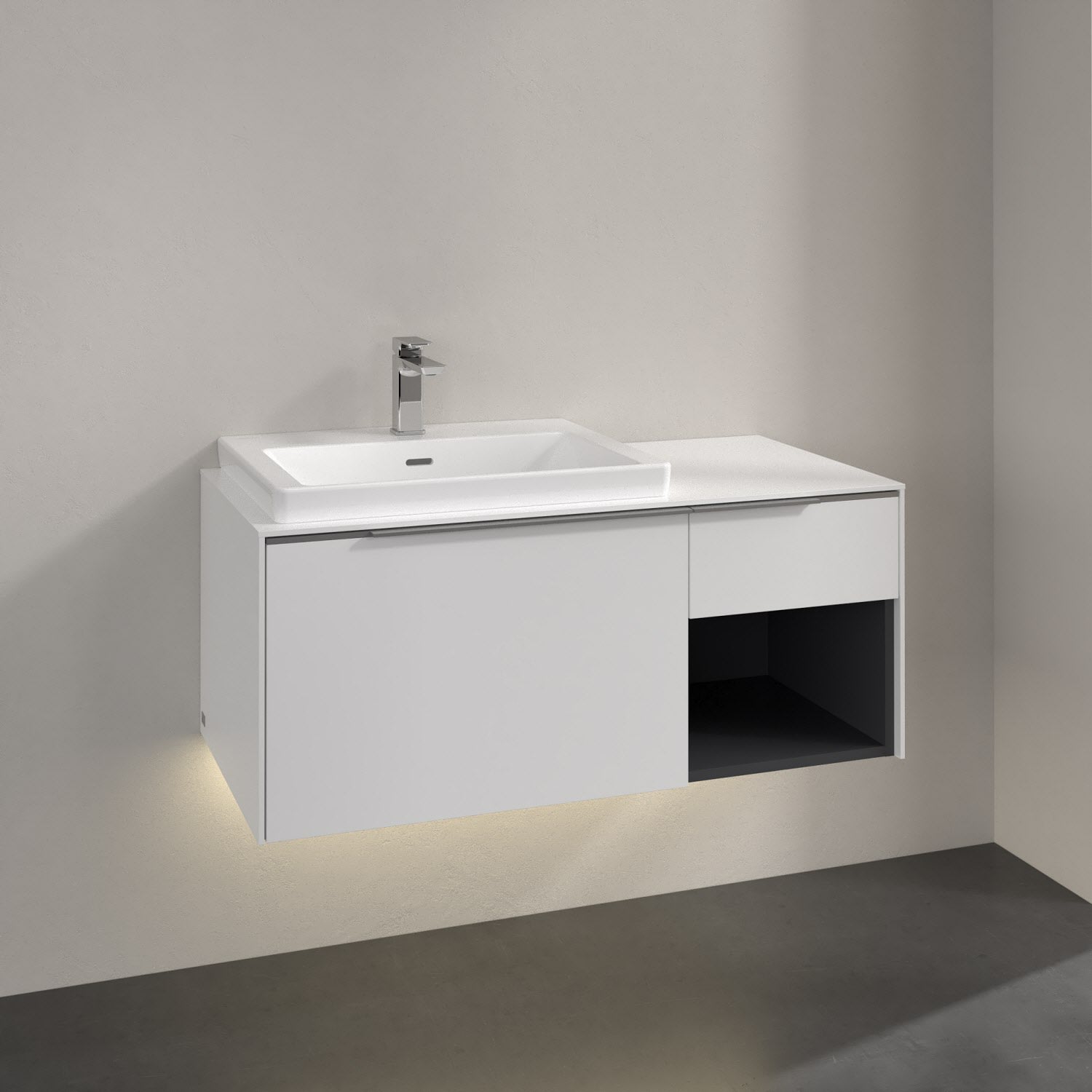 Villeroy & Boch Subway 3.0 Waschtischunterschrank 100,1 cm, 2 Auszüge und Regal rechts, mit LED-Beleuchtung