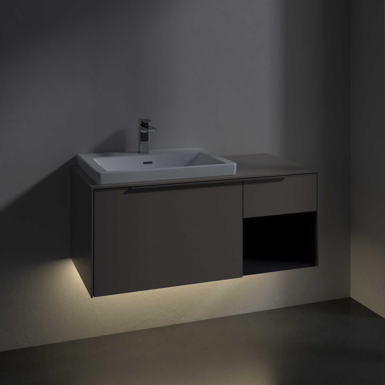 Villeroy & Boch Subway 3.0 Waschtischunterschrank 100,1 cm, 2 Auszüge und Regal rechts, mit LED-Beleuchtung