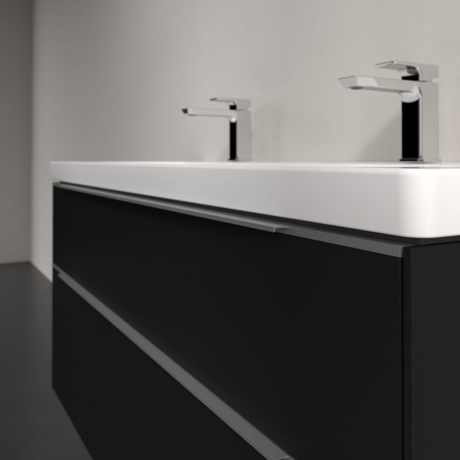 Der Waschtischunterschrank der Kollektion Subway 3.0 von Villeroy & Boch besticht durch gradliniges, zeitloses Design und großzügigen Stauraum. Front und Korpus sind mit einer hochwertigen Direktbeschichtung oder Lackierung, deren Anti-Fingerprint-Oberfläche unschönen Fingerabdrücken vorbeugt, versehen. Für eine einfache Handhabung sorgt eine dezente Griffleiste. Vier voll ausziehbare Schubladen mit rutschhemmenden Böden, Selbsteinzug-Funktion und zwei integrierten kleinen Accessory-Boxen bieten extra viel Platz für Pflege- und Hygieneartikel. Die beiden oberen Auszüge sind mit einer funktionalen LED-Leiste ausgestattet, die mit neutralweißem Licht das Innenleben beleuchtet. Highlight ist die LED-Bodenbeleuchtung, die stimmungsvolles, sanftes Licht ins Bad bringt und nachts als Orientierungshilfe dient. Helligkeit und Lichtfarbe können über den kapazitiven Sensor eingestellt werden. Die LED-Leuchten lassen sich durch einen Fachhandwerker austauschen.