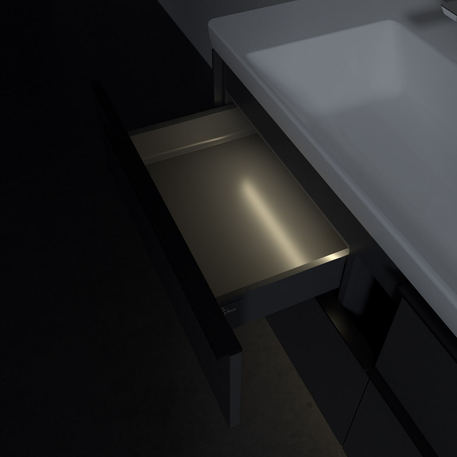 Der Waschtischunterschrank der Kollektion Subway 3.0 von Villeroy & Boch besticht durch gradliniges, zeitloses Design und großzügigen Stauraum. Front und Korpus sind mit einer hochwertigen Direktbeschichtung oder Lackierung, deren Anti-Fingerprint-Oberfläche unschönen Fingerabdrücken vorbeugt, versehen. Für eine einfache Handhabung sorgt eine dezente Griffleiste. Vier voll ausziehbare Schubladen mit rutschhemmenden Böden, Selbsteinzug-Funktion und zwei integrierten kleinen Accessory-Boxen bieten extra viel Platz für Pflege- und Hygieneartikel. Die beiden oberen Auszüge sind mit einer funktionalen LED-Leiste ausgestattet, die mit neutralweißem Licht das Innenleben beleuchtet. Highlight ist die LED-Bodenbeleuchtung, die stimmungsvolles, sanftes Licht ins Bad bringt und nachts als Orientierungshilfe dient. Helligkeit und Lichtfarbe können über den kapazitiven Sensor eingestellt werden. Die LED-Leuchten lassen sich durch einen Fachhandwerker austauschen.