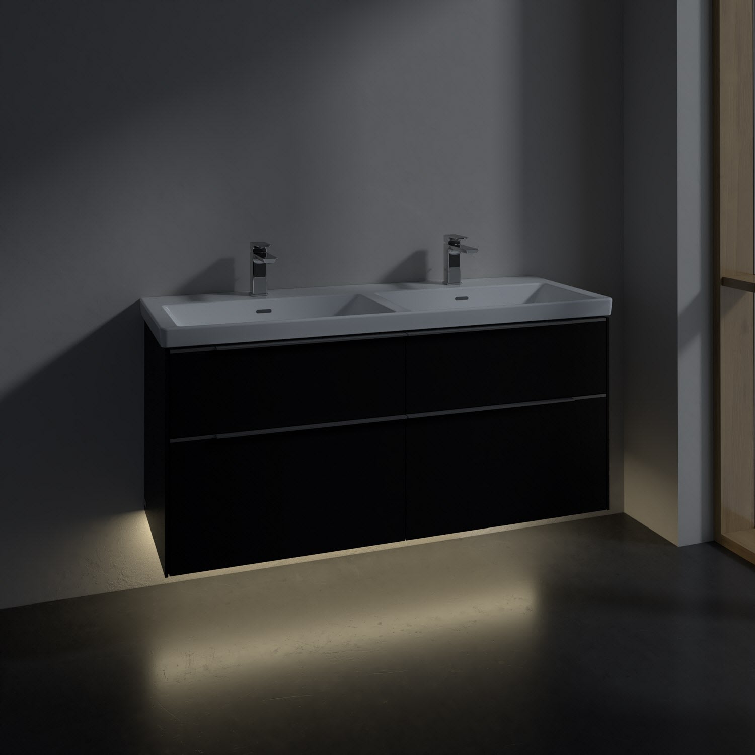 Villeroy & Boch Subway 3.0 Waschtischunterschrank 127,2 cm, 4 Auszüge, mit LED-Beleuchtung, für Doppel-Waschtisch