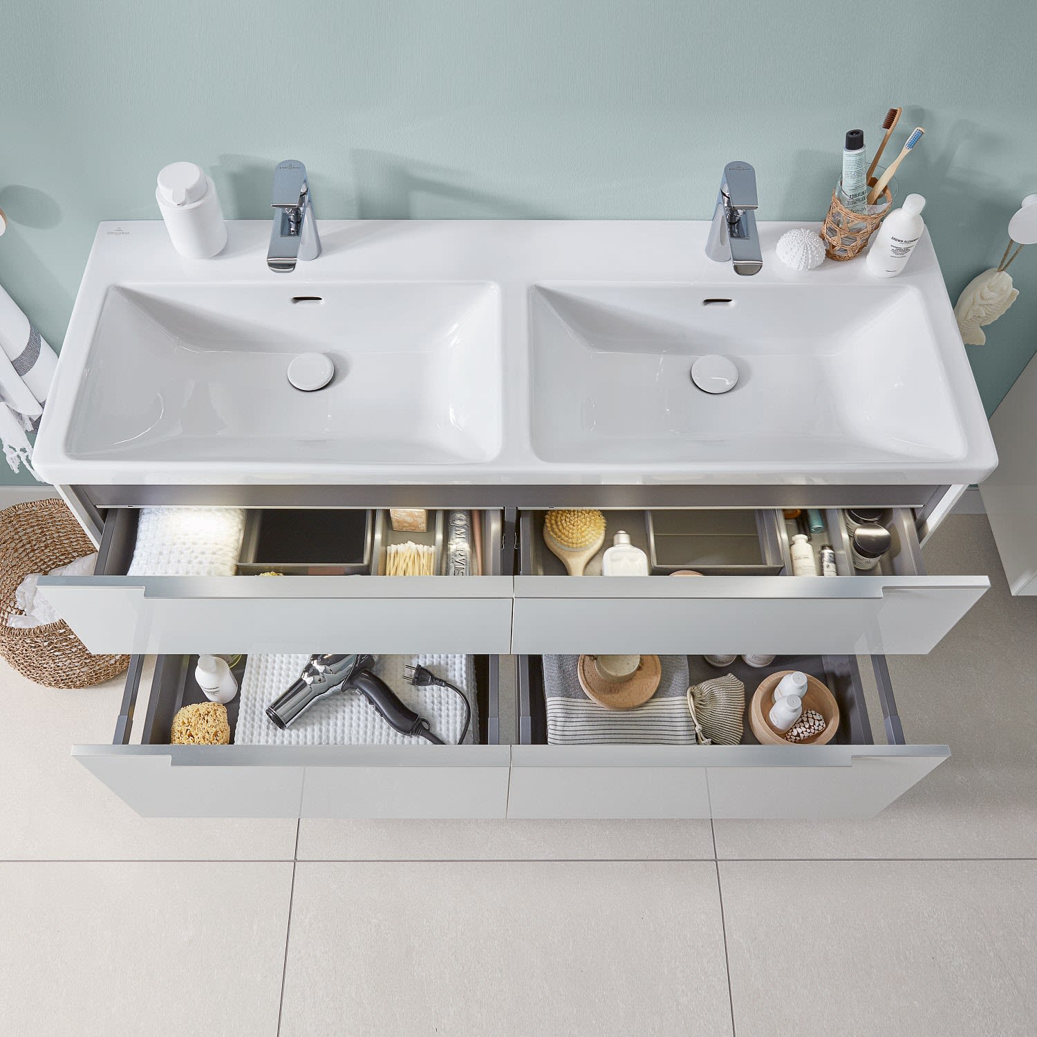 Villeroy & Boch Subway 3.0 Schrank-Doppelwaschtisch 130 cm, mit 2 Hahnlöchern, mit Überlauf