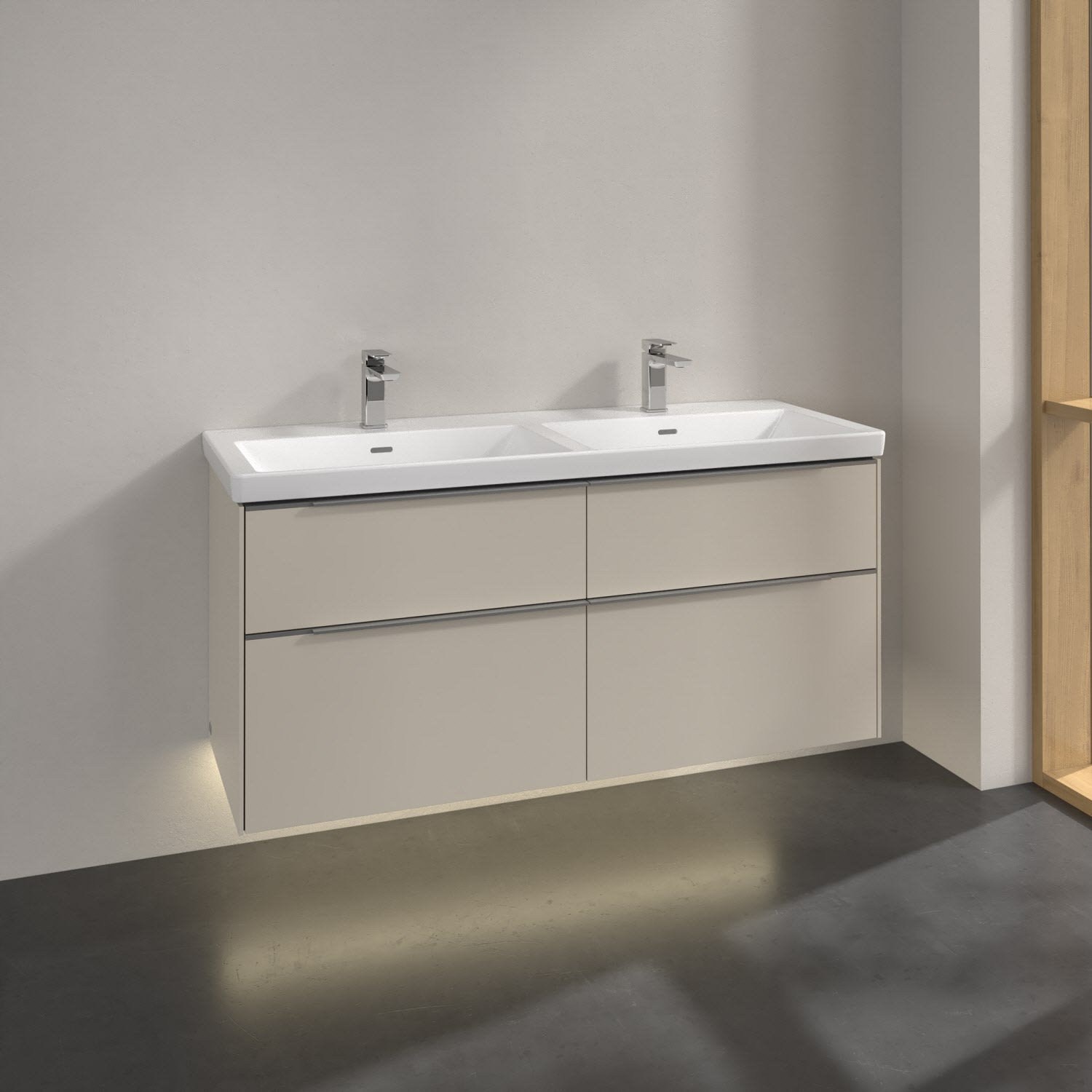Villeroy & Boch Subway 3.0 Waschtischunterschrank 127,2 cm, 4 Auszüge, mit LED-Beleuchtung, für Doppel-Waschtisch