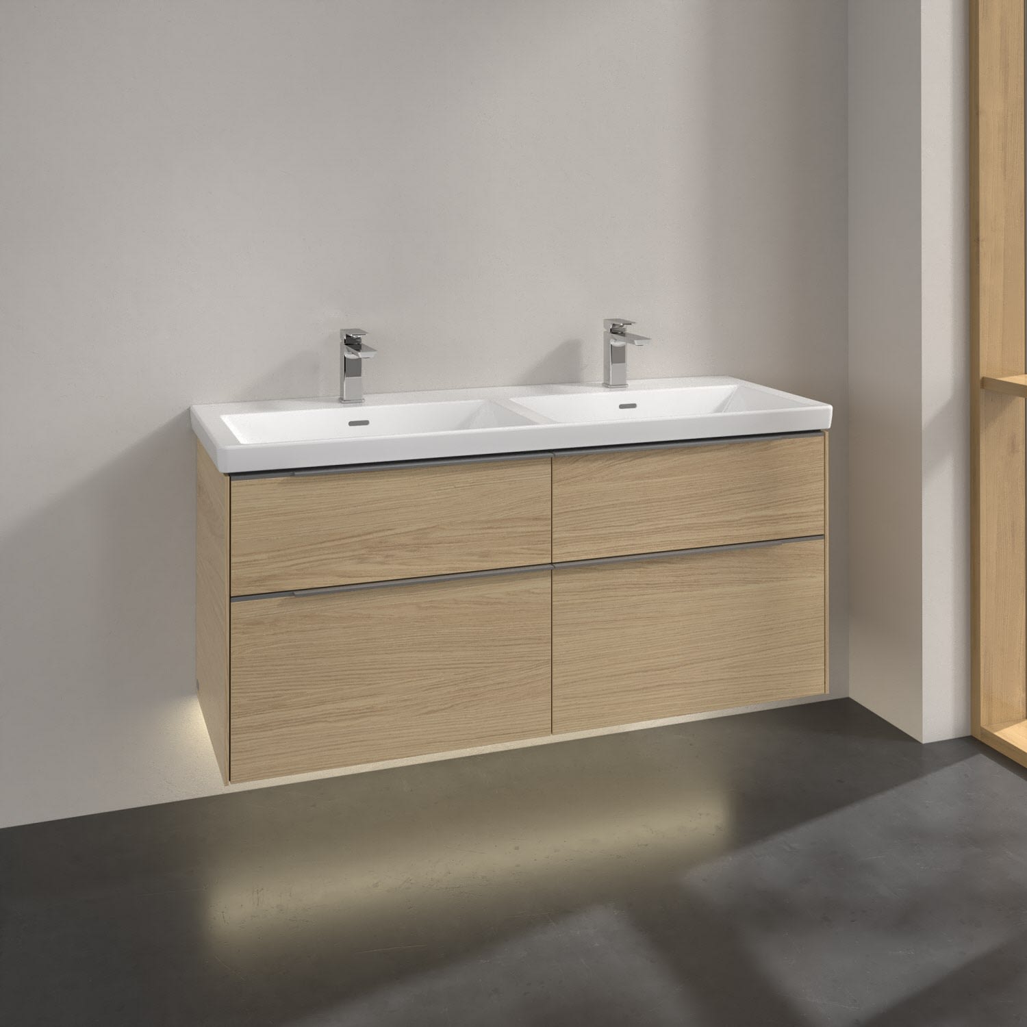 Villeroy & Boch Subway 3.0 Waschtischunterschrank 127,2 cm, 4 Auszüge, mit LED-Beleuchtung, für Doppel-Waschtisch