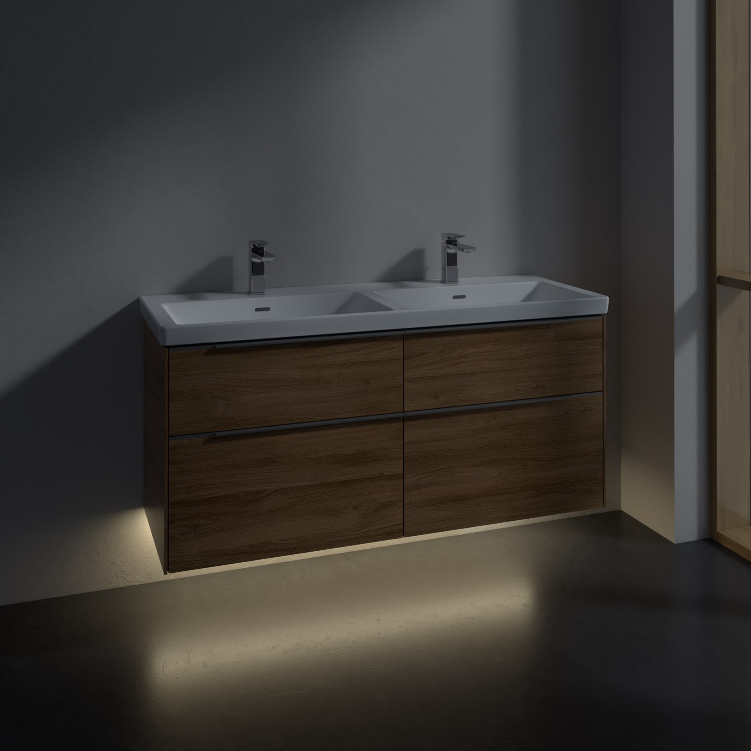 Villeroy & Boch Subway 3.0 Waschtischunterschrank 127,2 cm, 4 Auszüge, mit LED-Beleuchtung, für Doppel-Waschtisch