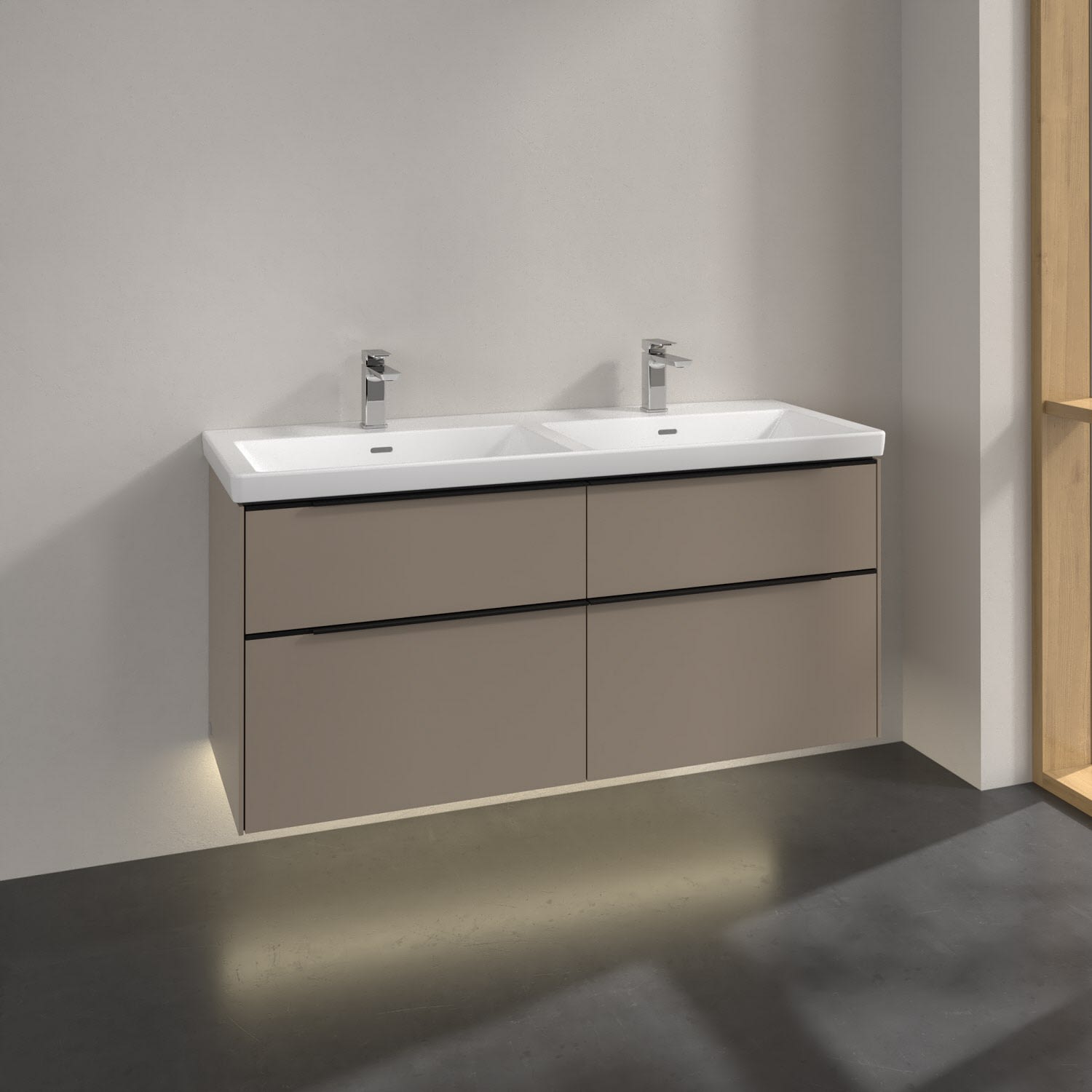 Villeroy & Boch Subway 3.0 Waschtischunterschrank 127,2 cm, 4 Auszüge, mit LED-Beleuchtung, für Doppel-Waschtisch