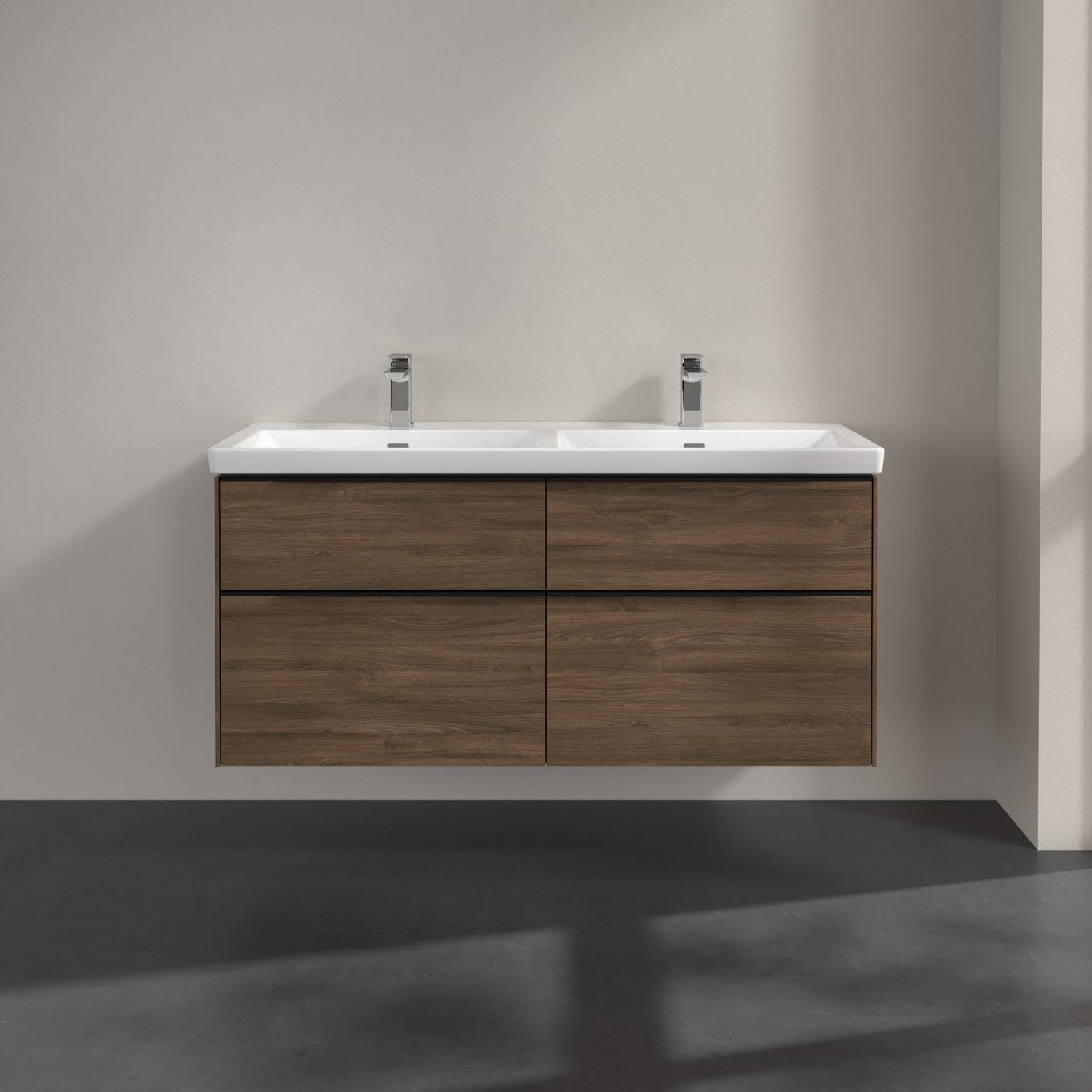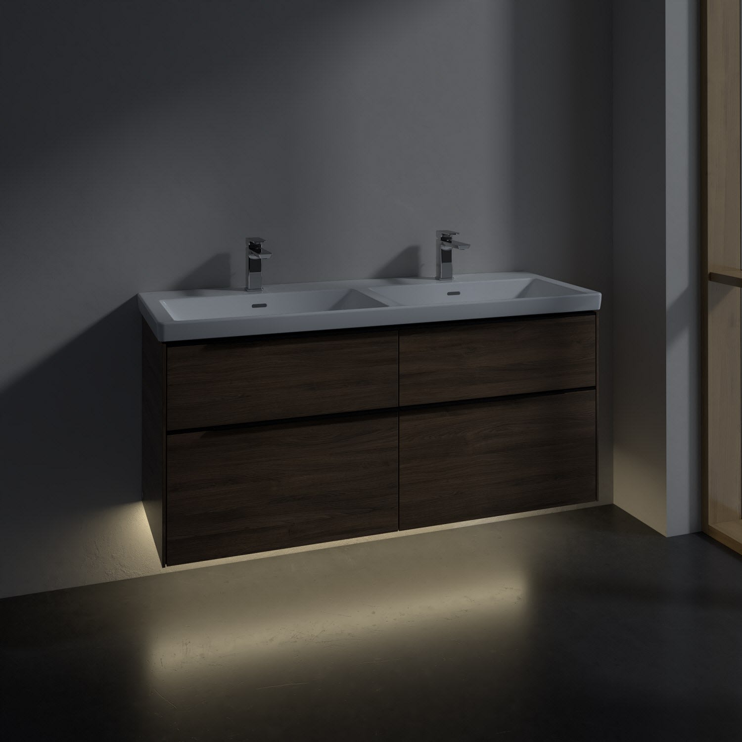 Villeroy & Boch Subway 3.0 Waschtischunterschrank 127,2 cm, 4 Auszüge, mit LED-Beleuchtung, für Doppel-Waschtisch